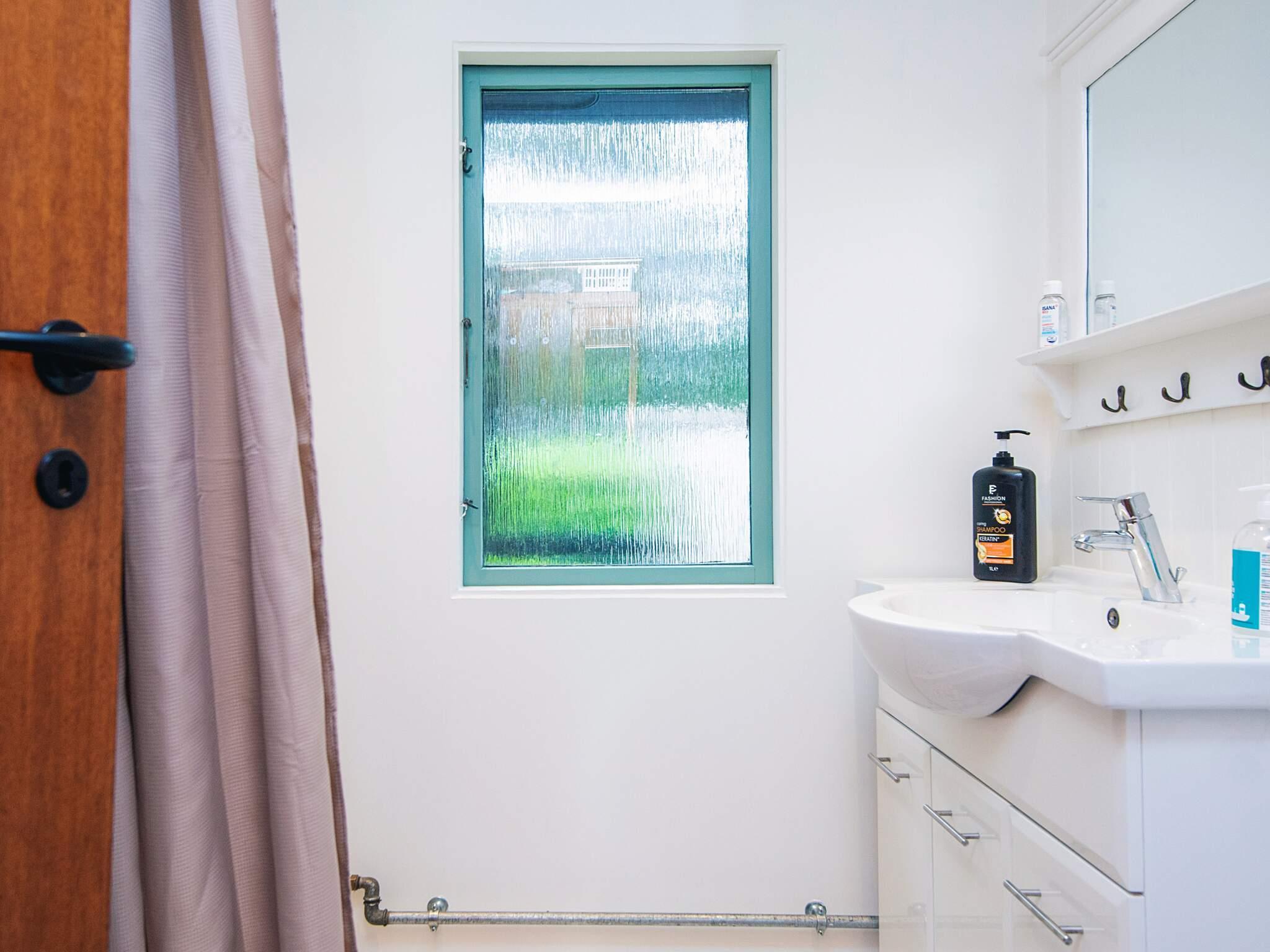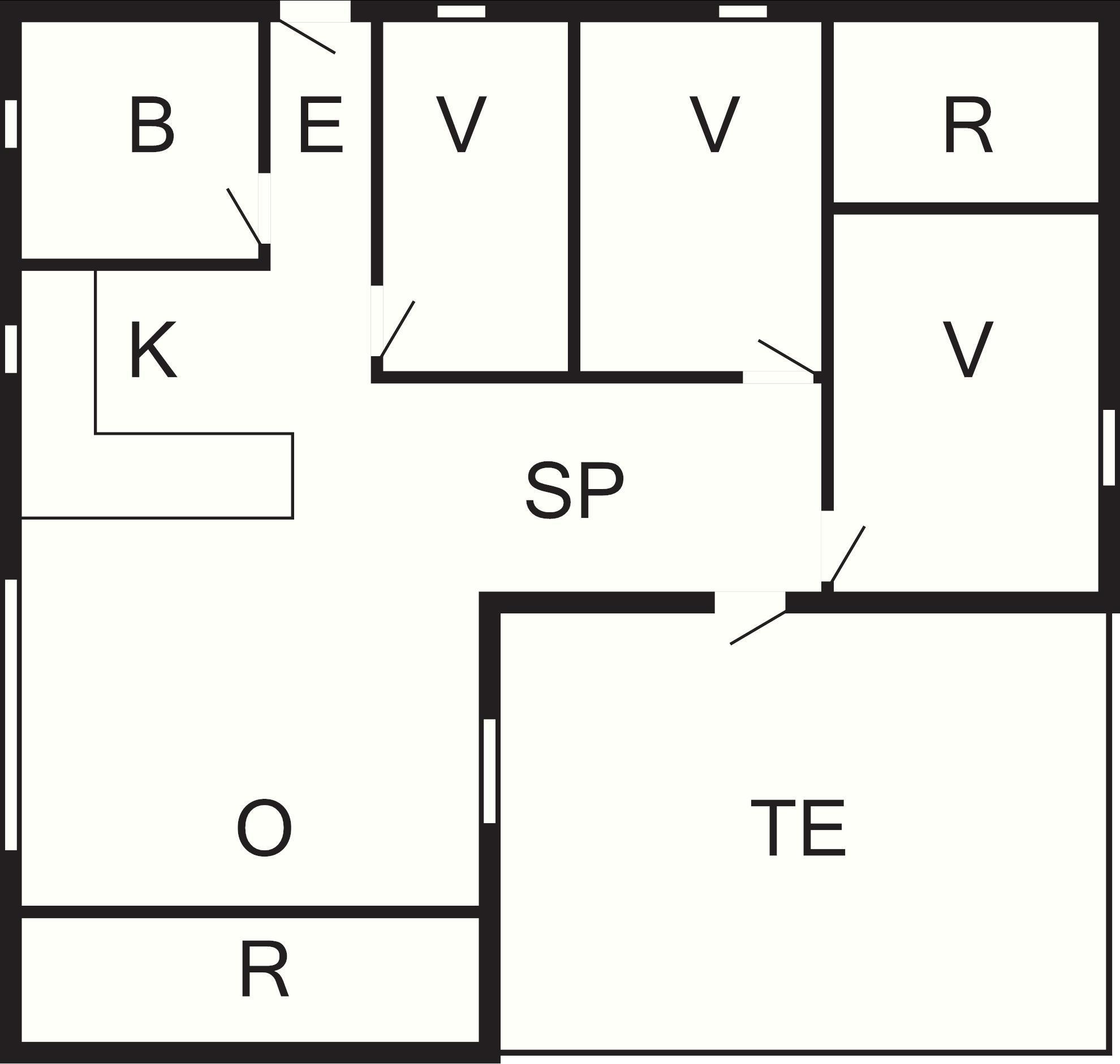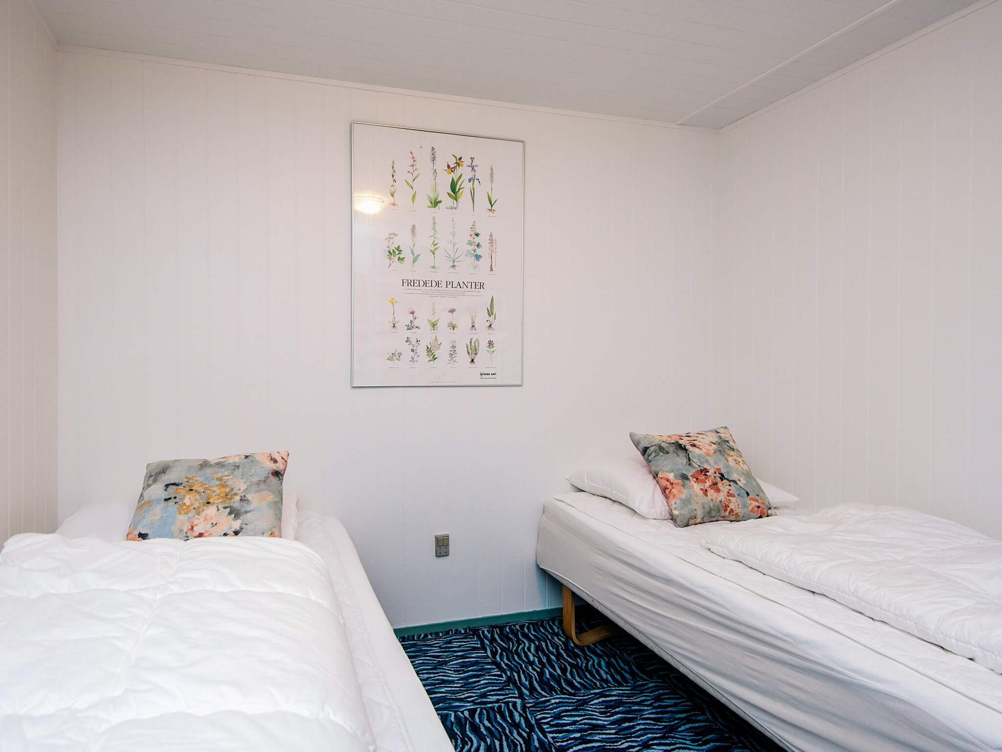 Sommerhuset er indrettet med køkken alrum, 1 soveværelse med dobbeltseng, 1 soveværelse med 2 enkeltsenge og 1 med køjesenge, samt et ældre badeværelse med bruser.