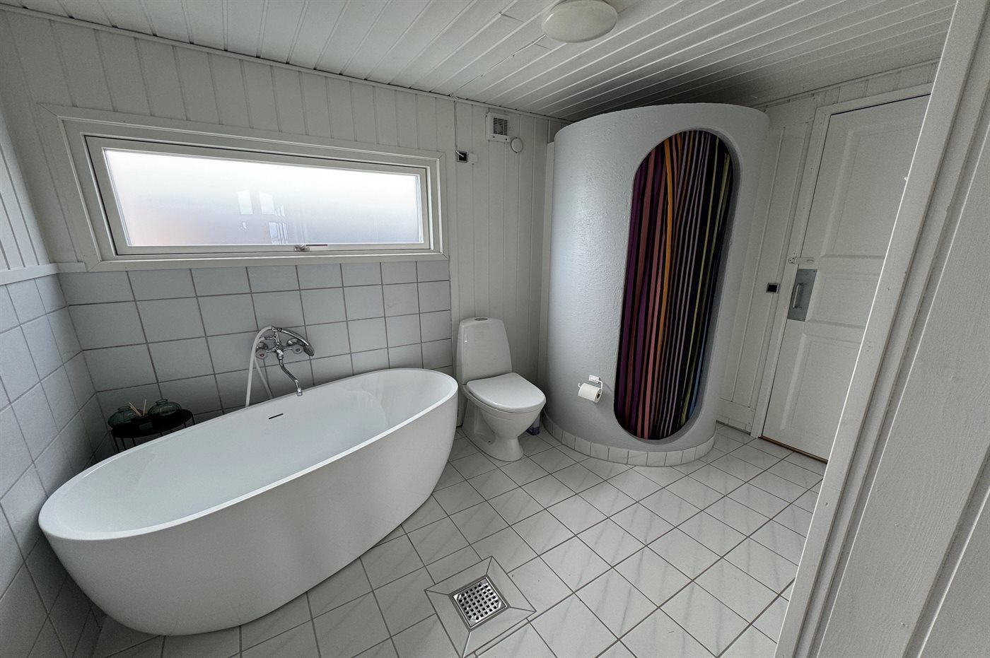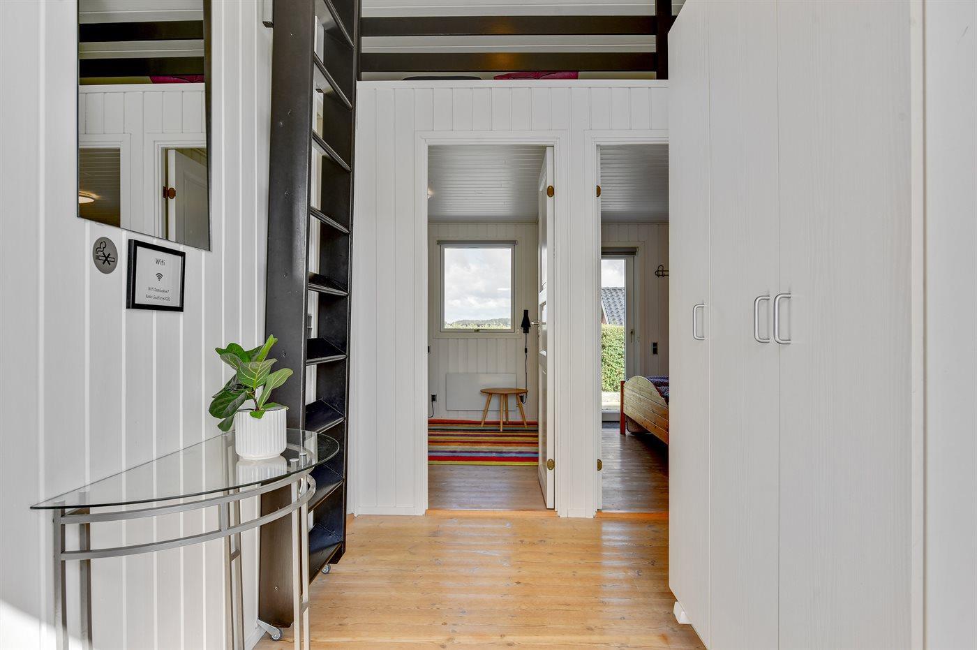 Ferieboligen er beliggende på en 885 m² stor havegrund. Der er 200 m til havet. Nærmeste forretning er beliggende i en afstand af 2000 m. Til ferieboligen hører 45 m² åbent terrasseareal. Desuden er der 15 m² overdækket terrasse. Weber grill til rådighed. Der er carport til rådighed. Parkering ved ferieboligen.