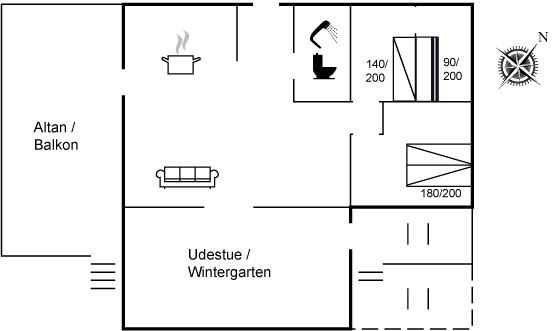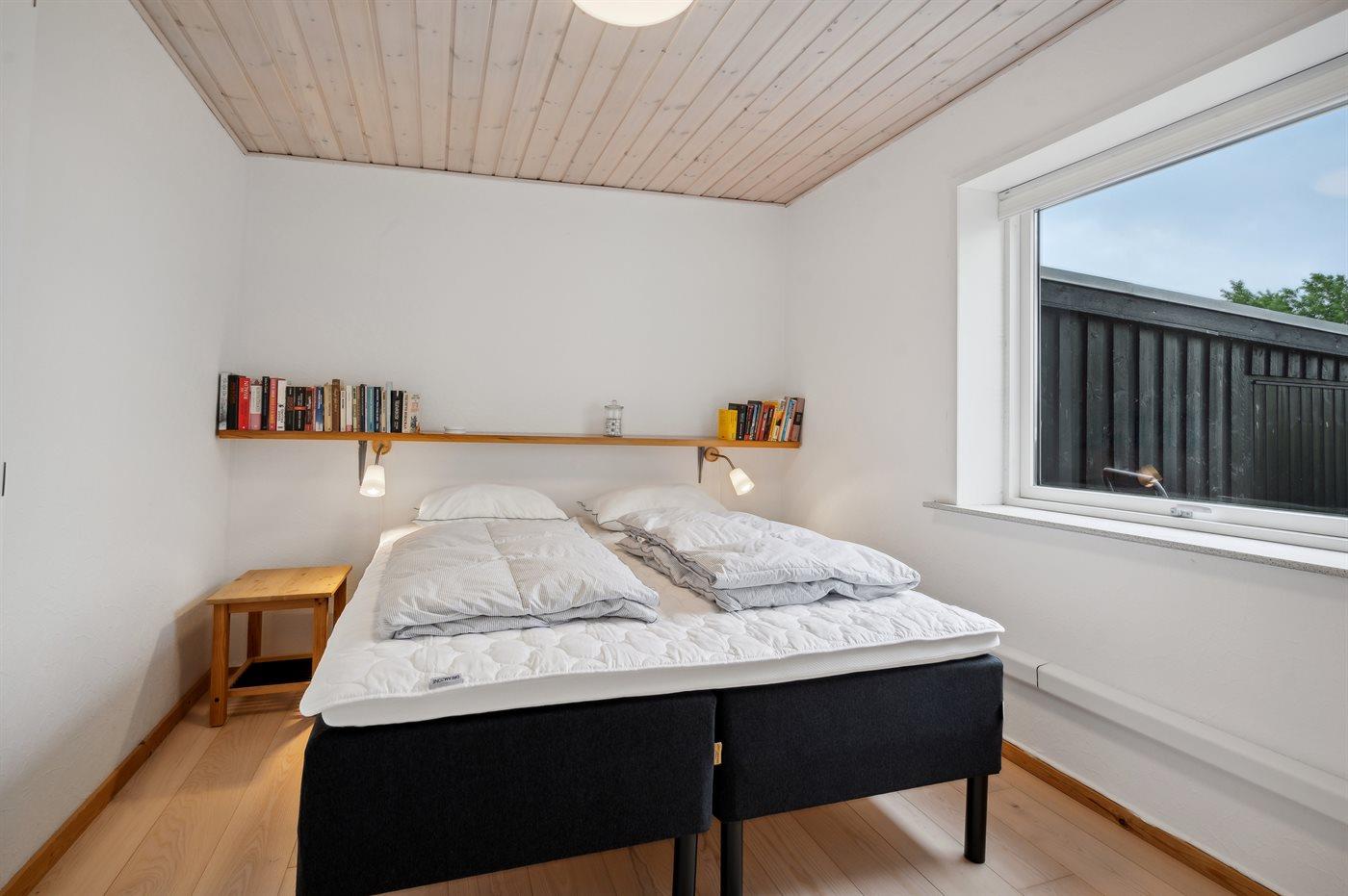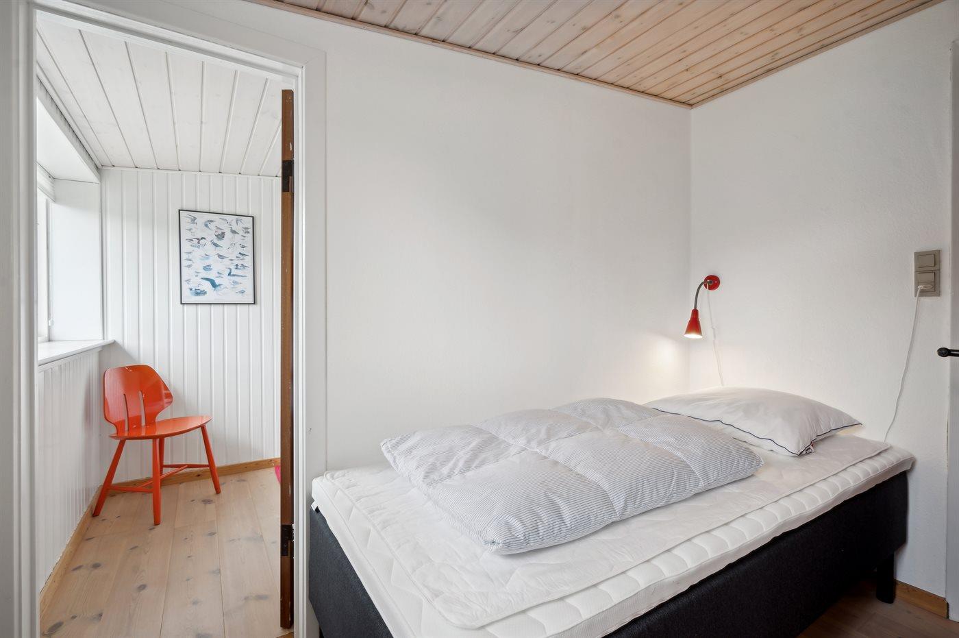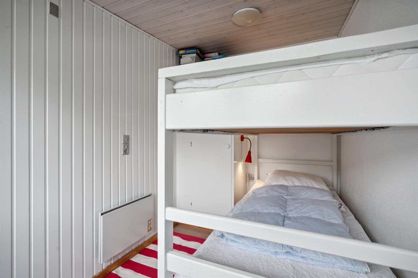 Der er i alt 3 soveværelser. Sovepladserne fordeler sig på: 2 sovepladser i dobbeltseng. 1 soveplads i enkeltseng. 2 sovepladser i køjeseng.