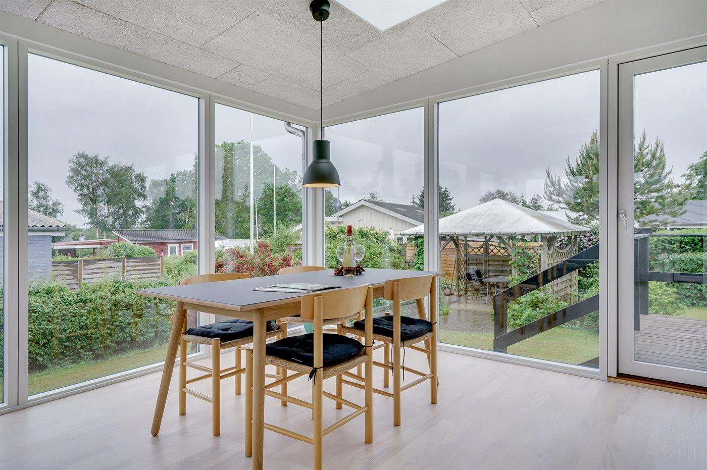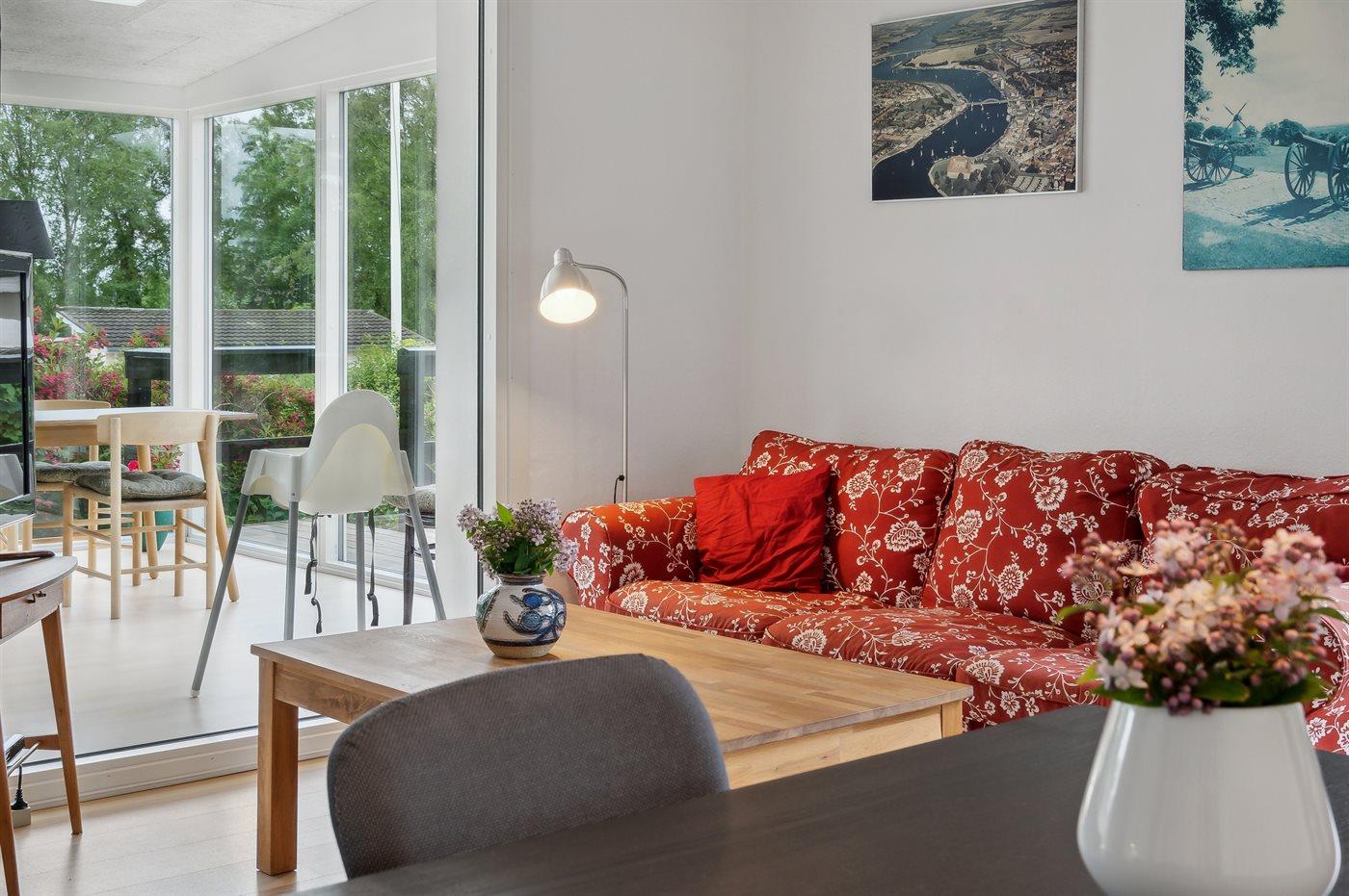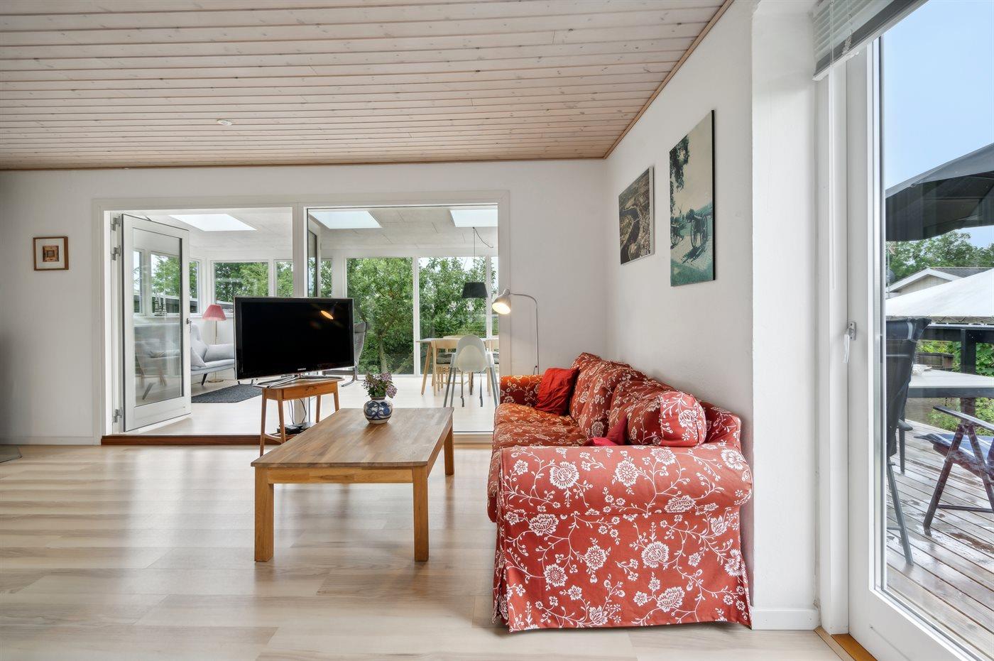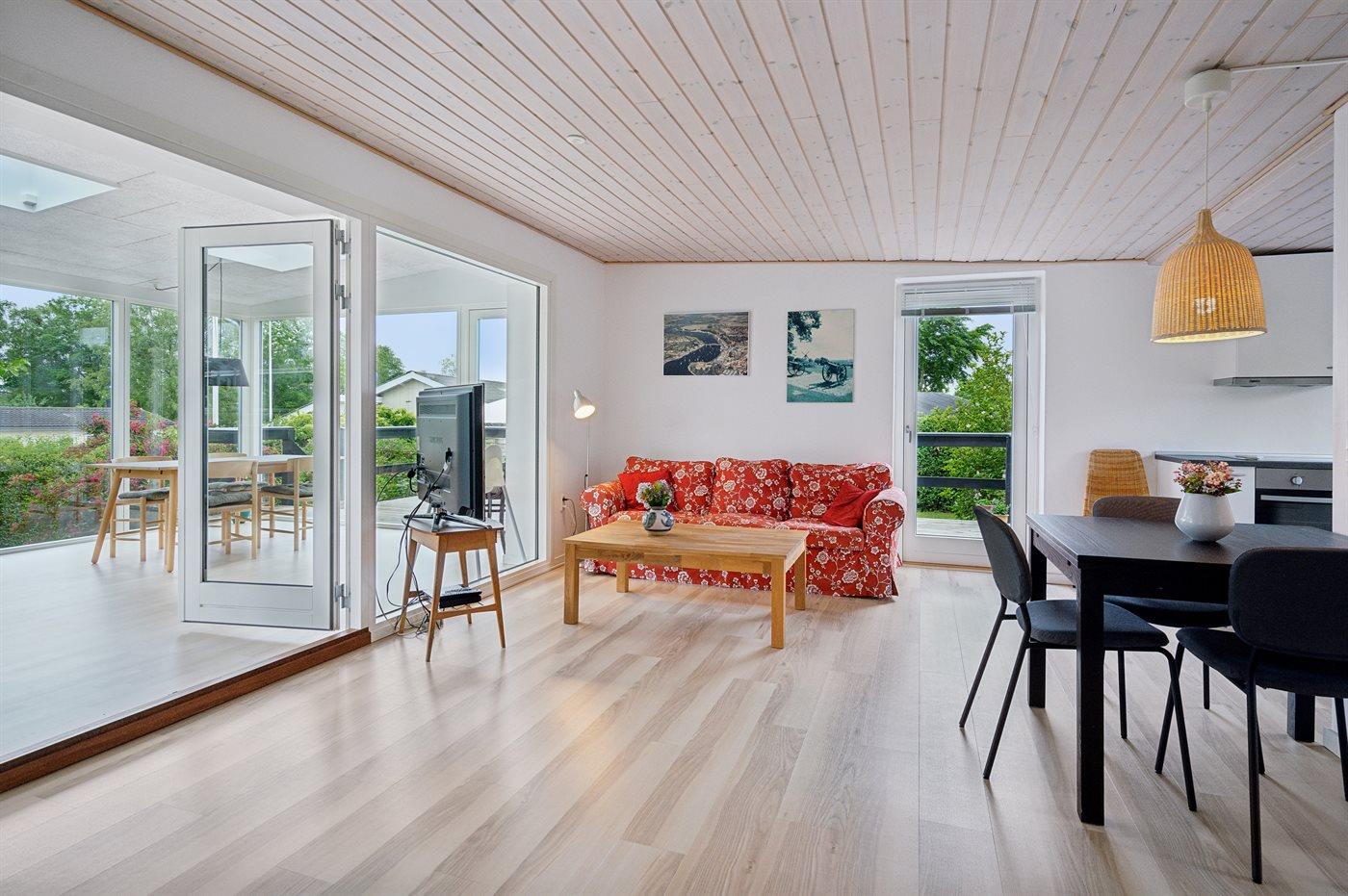 Et dejligt, lyst indrettet sommerhus med udgang til en skøn udestue, hvorfra der er kig til vandet. Huset ligger tæt ved en dejlig og børnevenlig sandstrand.