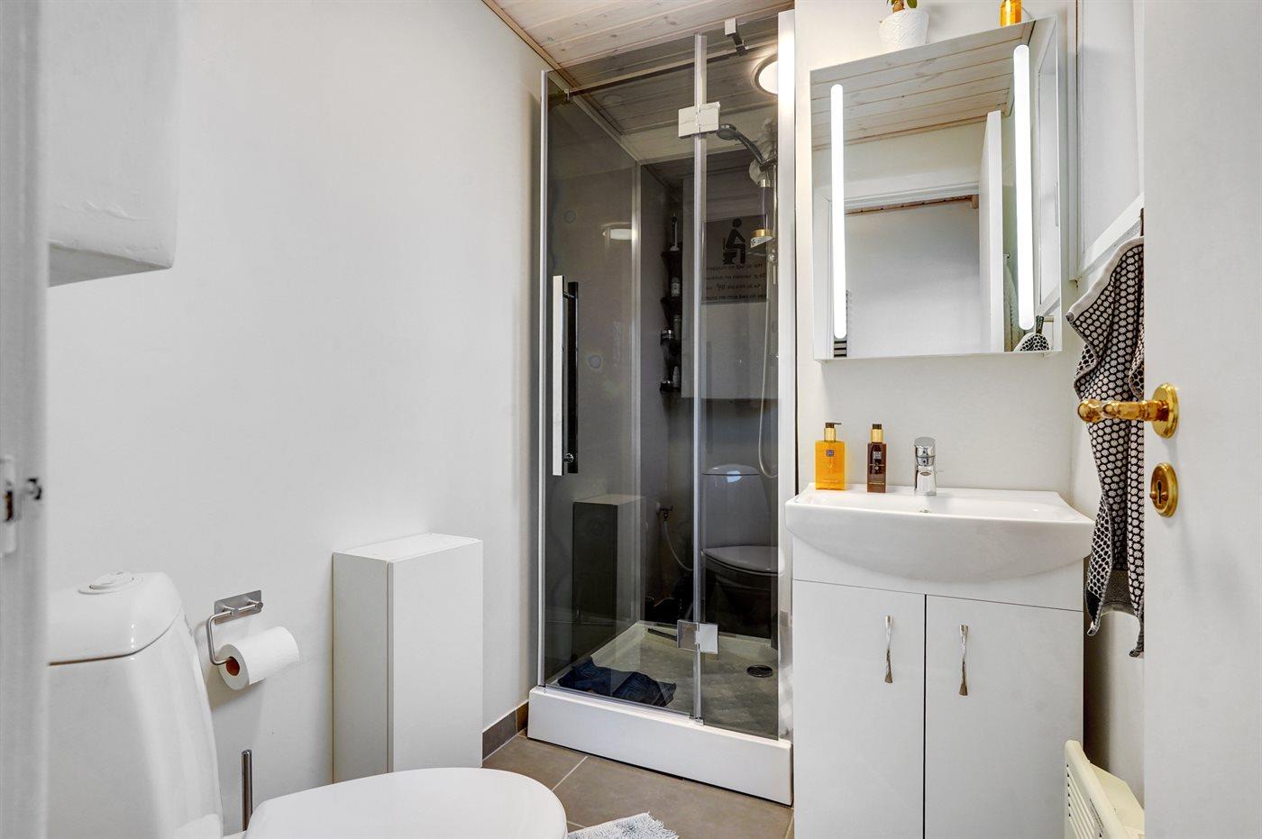 Der er 1 badeværelse med bruseniche og 1 toilet.