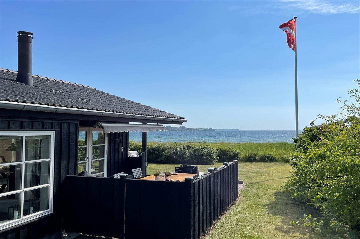 Dejligt sommerhus beliggende i første række, 20 m fra sandstranden i Vemmingbund. Fra hus og grund er der panoramaudsigt over vandet.