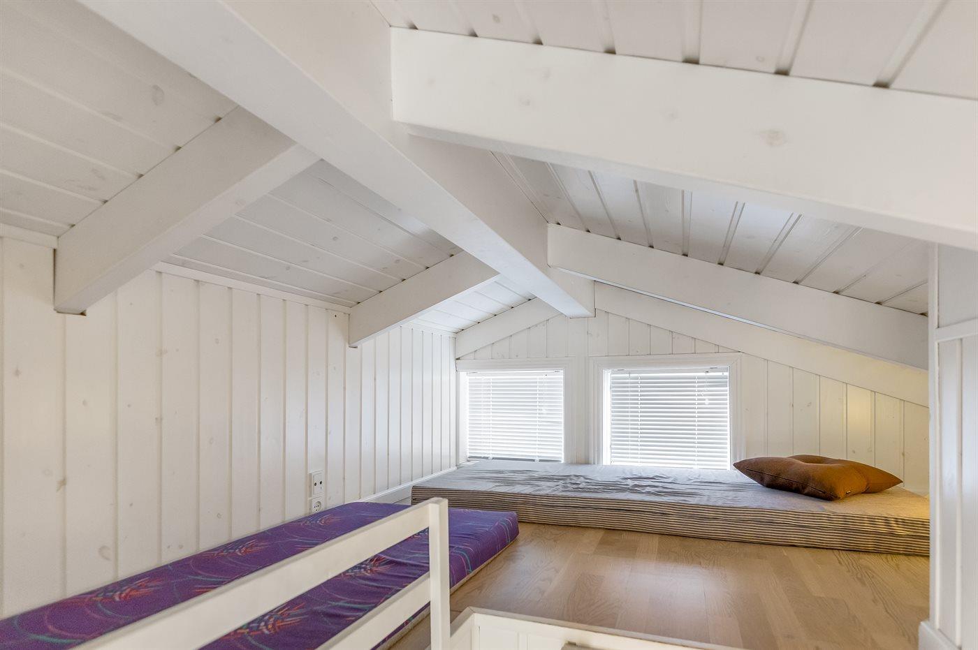 Der er i alt 3 soveværelser. Sovepladserne fordeler sig på: 4 sovepladser i dobbeltsenge. 3 sovepladser i køjesenge. 2 sovepladser på madrasser. 2 af disse sovepladser befinder sig på husets hems. Derudover er der 1 stk. barneseng.