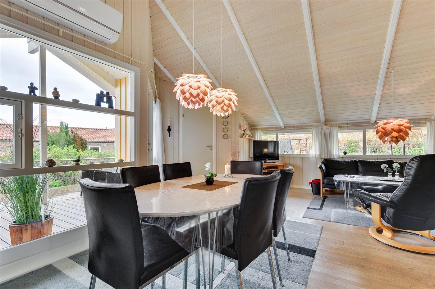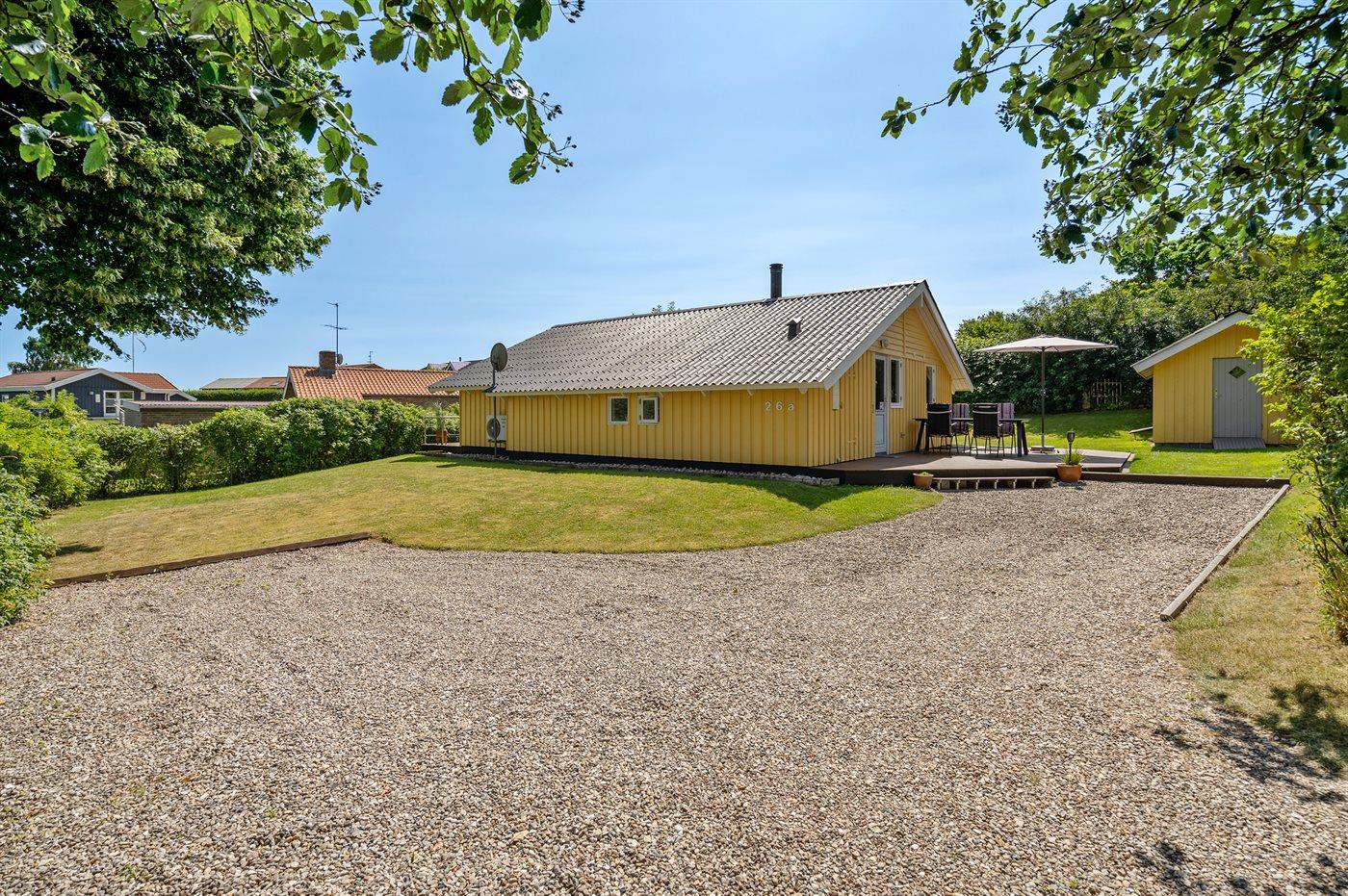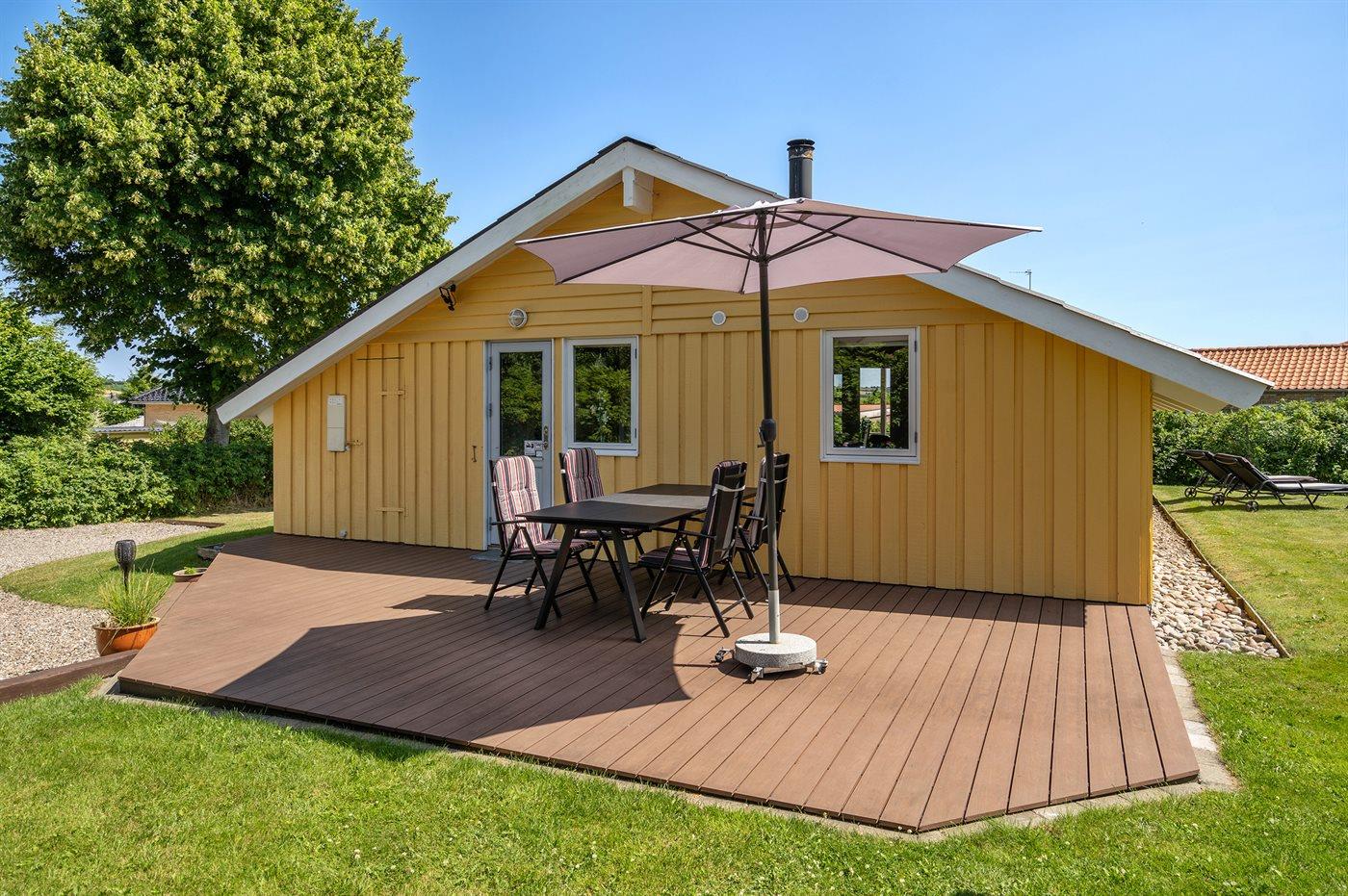 Ferieboligen er beliggende på en 700 m² stor havegrund. Der er 200 m til havet. Nærmeste forretning er beliggende i en afstand af 1500 m. Til ferieboligen hører 43 m² terrasseareal. Desuden er der 15 m² overdækket terrasse. Gynge. Trampolin. Der ligger en legeplads i en afstand af 200 m. Grill til rådighed. Parkering ved ferieboligen.