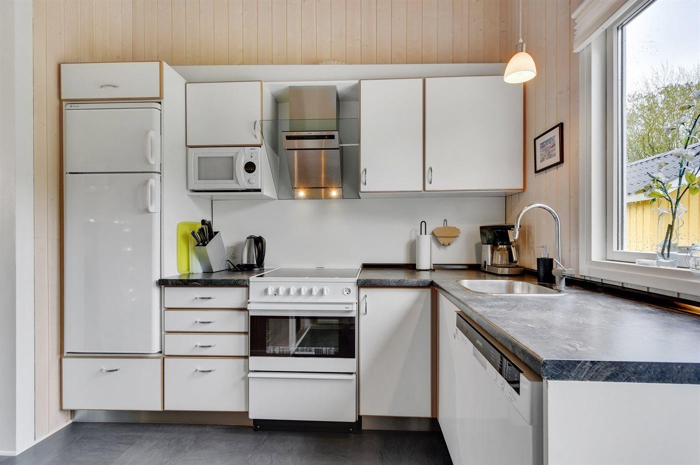 Køkkenet er udstyret med 1 køleskab. Der er 4 keramiske kogeplader, varmluftovn, mikrobølgeovn samt opvaskemaskine.