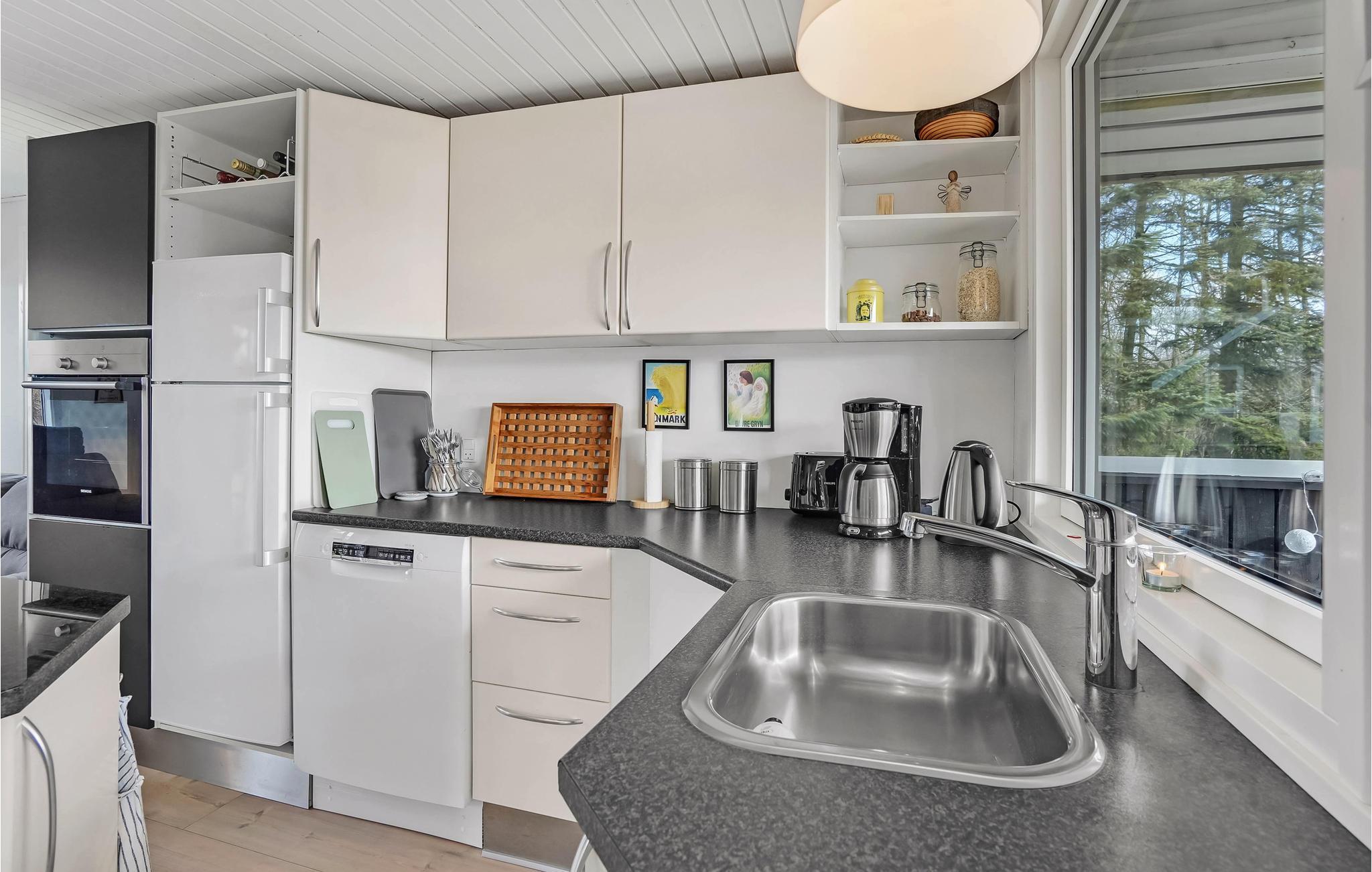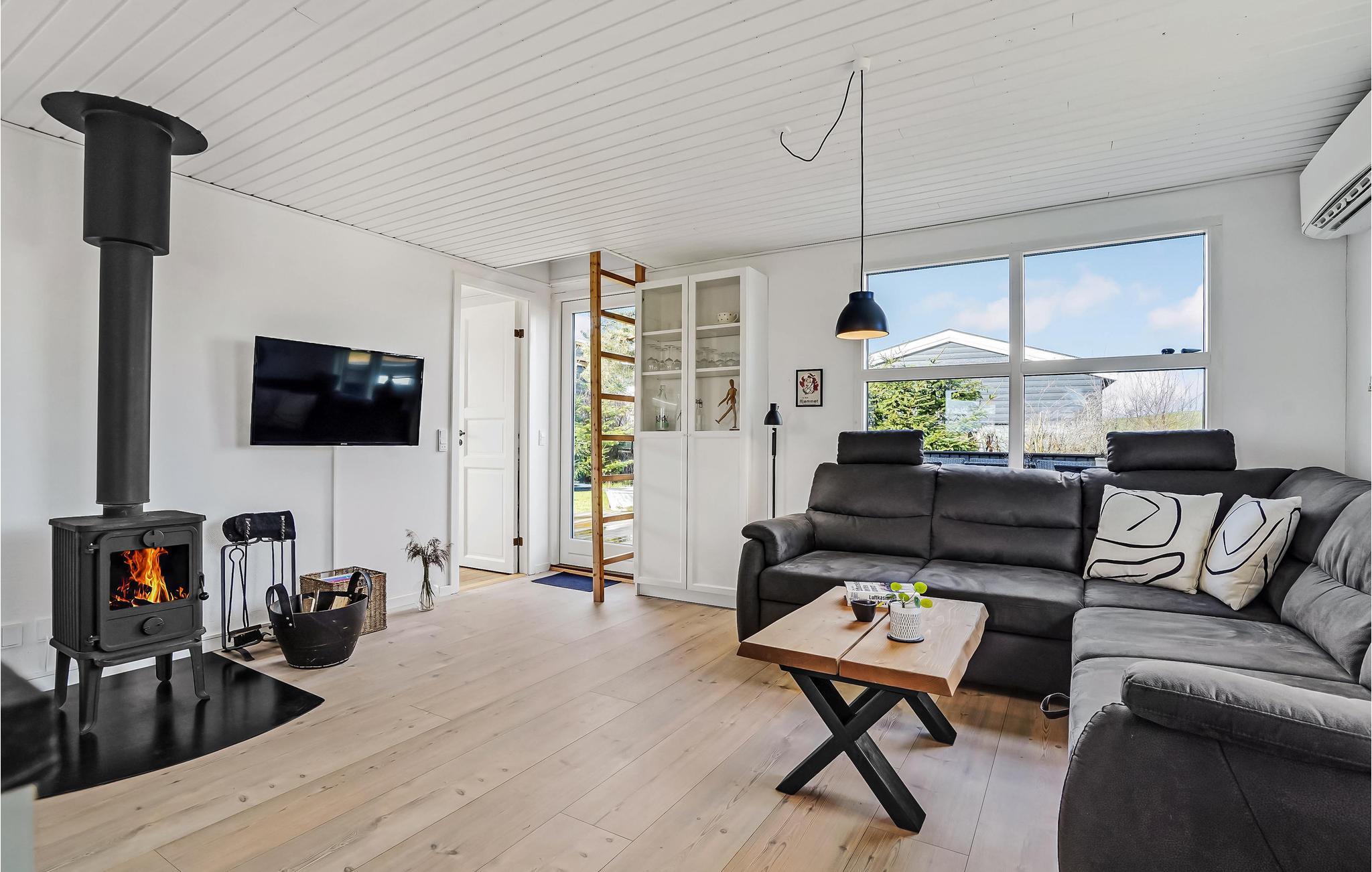 Velkommen til det hyggelige hus, som ligger roligt placeret i landlige rammer og har en skøn udsigt et grønt landskab. Boligen er lys og moderne med enkle stilvalg, så her er der gode rammer til at slappe af for hele familien. De store vinduespartier lukker det naturlige lys ind i boligen og giver jer adgang til den behagelige udsigt, også når I gør aftensmaden klar eller nyder dagens måltider. I kan skrue ekstra op for hyggen og varmen i vinterhalvåret ved at fyre op i brændeovnen.