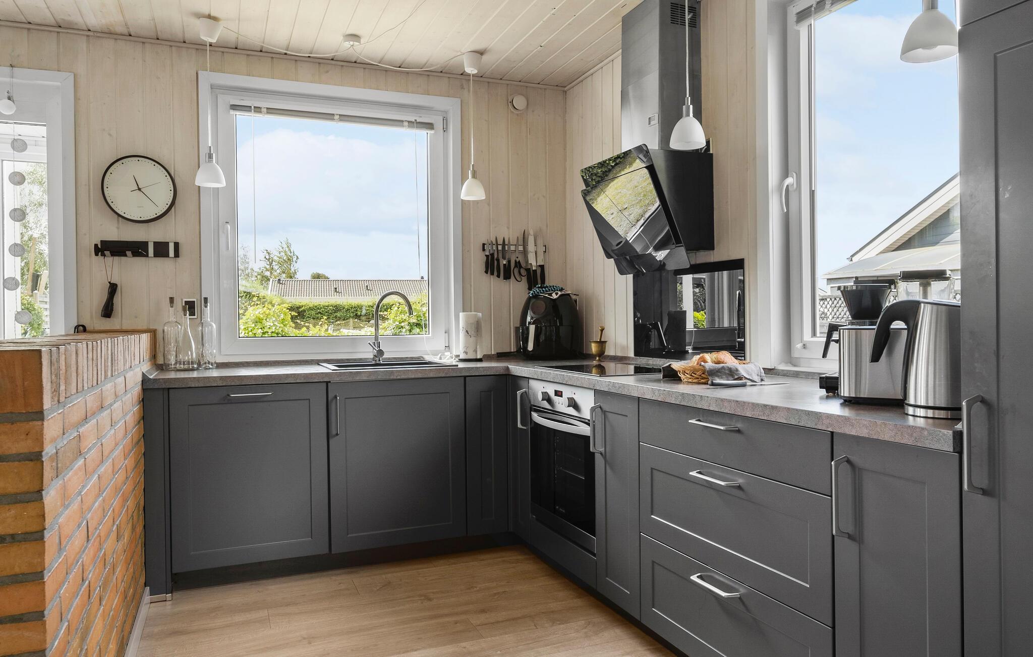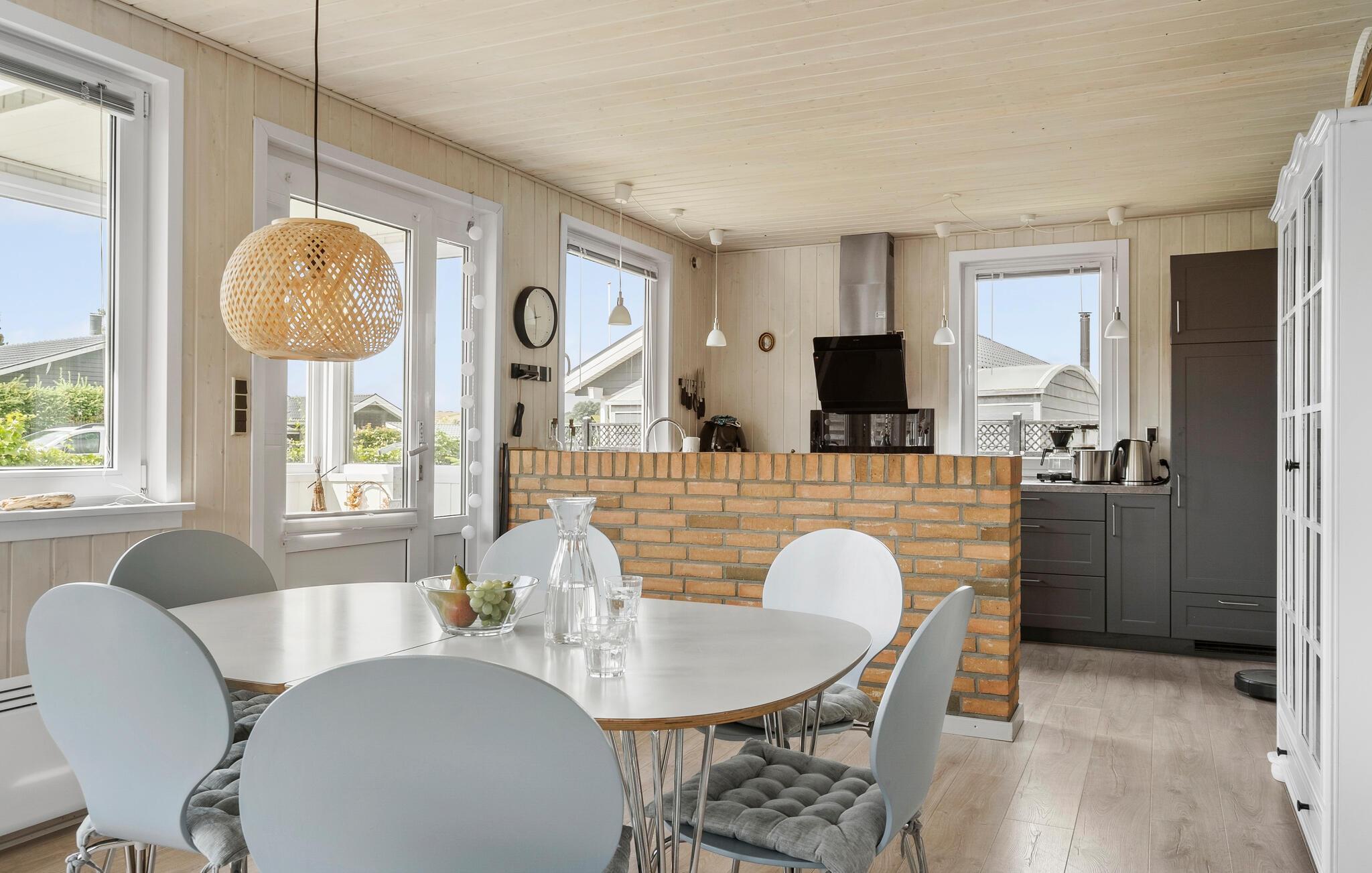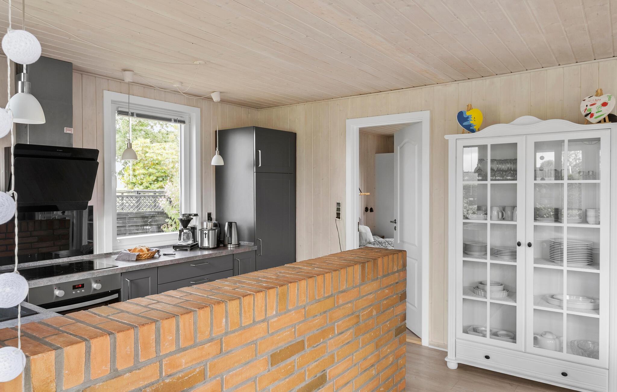 Der er ikke langt ned til den skønne sandstrand fra dette sommerhus. Her kan I have en hyggelig feriebase, hvor I kan slappe af og nyde nogle dejlige dage sammen. I hyggekrogen kan I lade batterierne op foran brændeovnen. Om aftenen kan I udvælge en god film, som I kan se fra sofaen. Køkkenet er aflukket med en halvevæg af flot murstensværk. I haven er der lagt op til afslappende stunder, og hyggelige grillaftener.