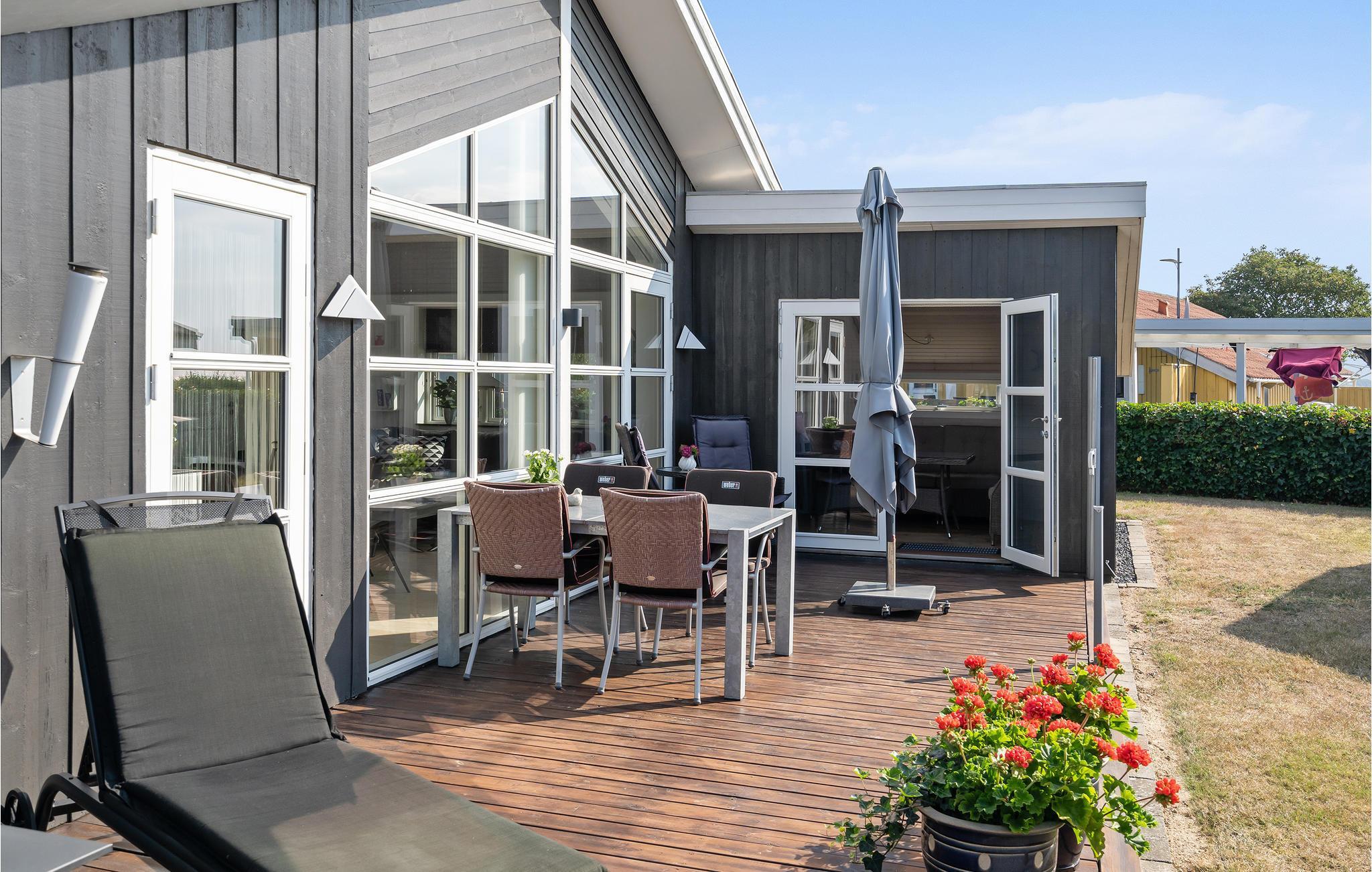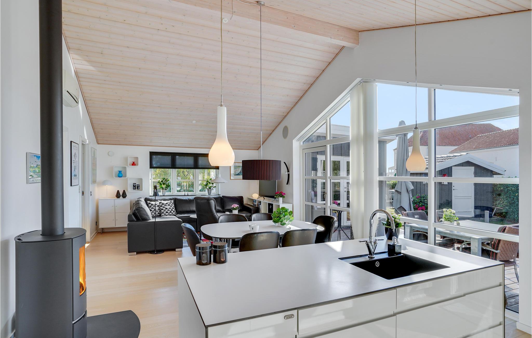 Moderne feriehus ved Vemmingbunds sandstrand med åben planløsning og dejlig terrasse til grill og afslapning.