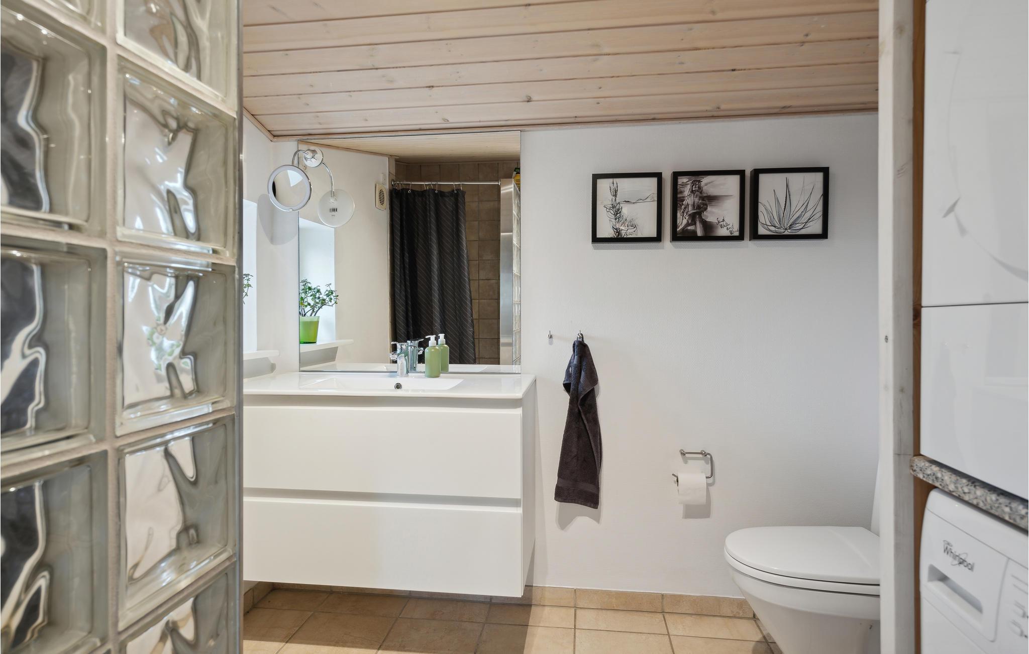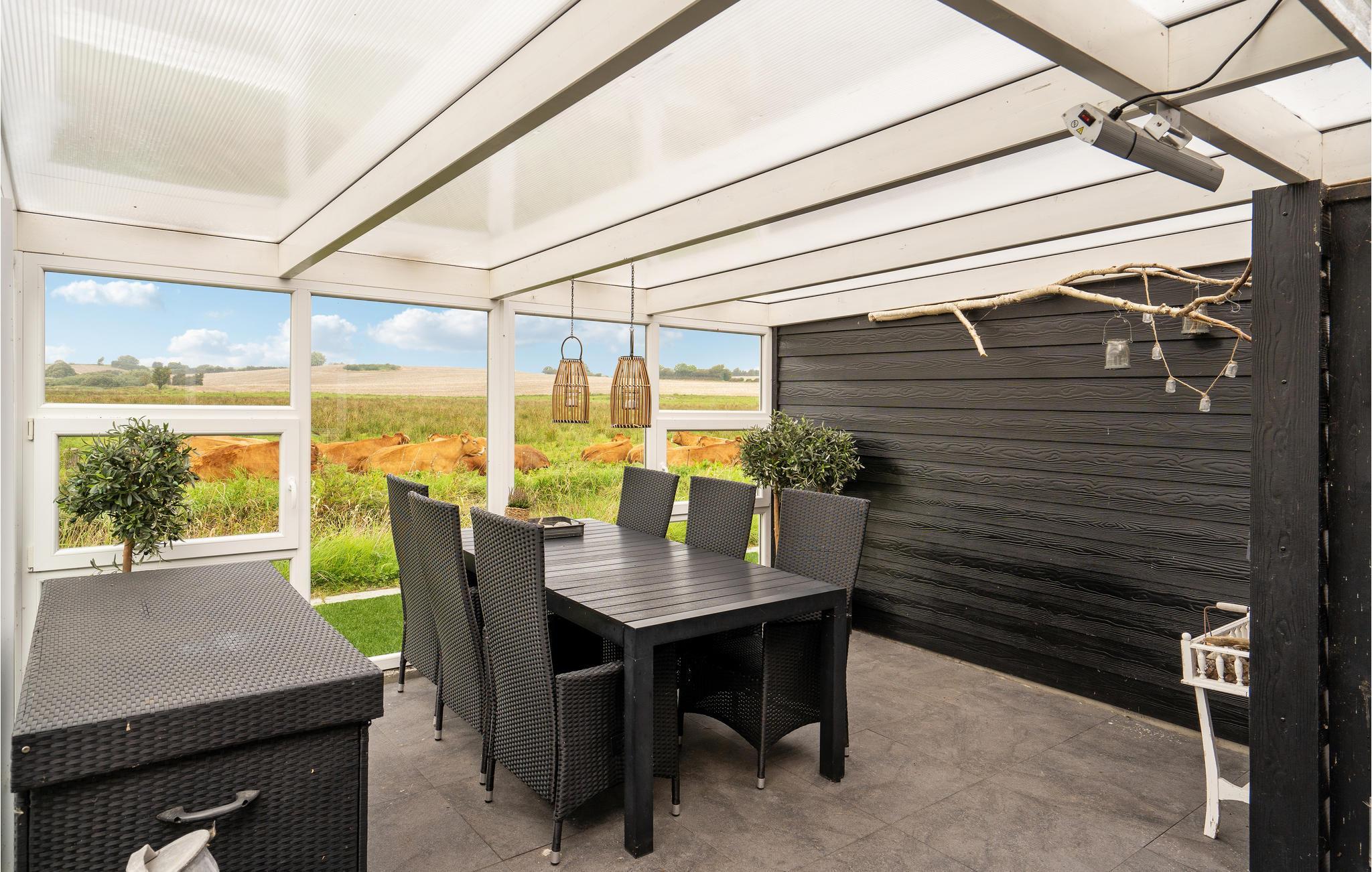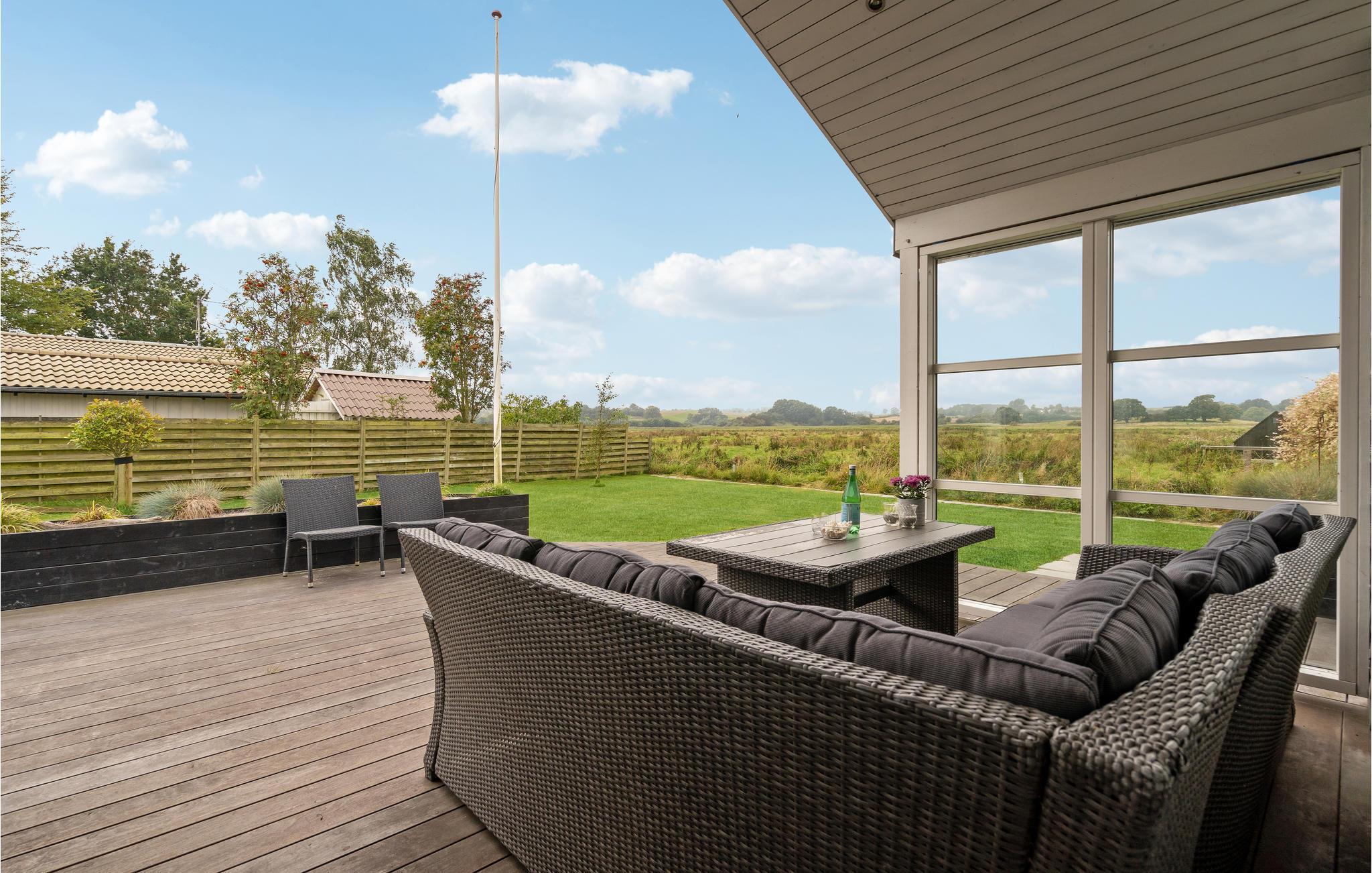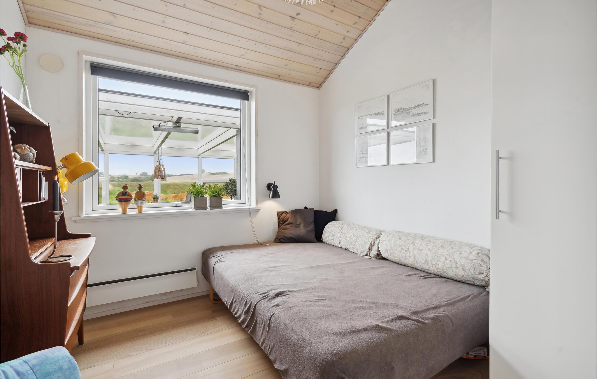 Velkommen til en helt igennem skøn beliggenhed ud til marker og kun nogle få minutters gang fra en familievenlig sandstrand. Her kan I se frem til en lys og åben bolig med stilrene indretningsløsninger og gode faciliteter. Dagens fælles aktiviteter finder sted i den store, hyggelige stue, hvor I kan nyde den fantastiske udsigt gennem det brede vinduesparti og læne jer godt tilbage i sofahjørnet med gode bøger eller et brætspil. Oven på en lang, frisk gåtur eller et dyp ved stranden er det rart at komme tilbage og få varmen foran ilden i brændeovnen.