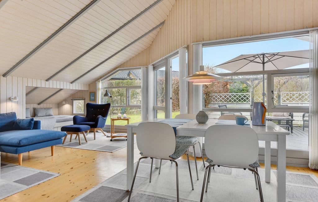 Hyggeligt feriehus ved Vemmingbund Strand med brændeovn, trådløst internet og flere terrasser i rolige omgivelser.