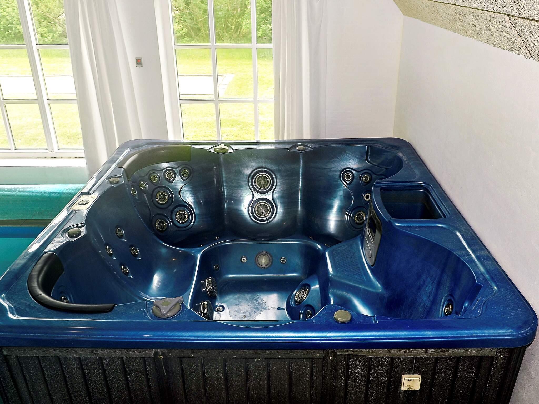I den 31 kvadratmeter store pool kan I tage en forfriskende dukkert, ligegyldigt vind og vejr, og der er rutsjebane til børnene. Vil I hellere bare slappe af, er det store spabad ideelt. Her er plads til helt op til 5 personer. I sommerhusets infrarøde sauna kan I hurtigt blive tørre igen efter en dag i badetøjet.