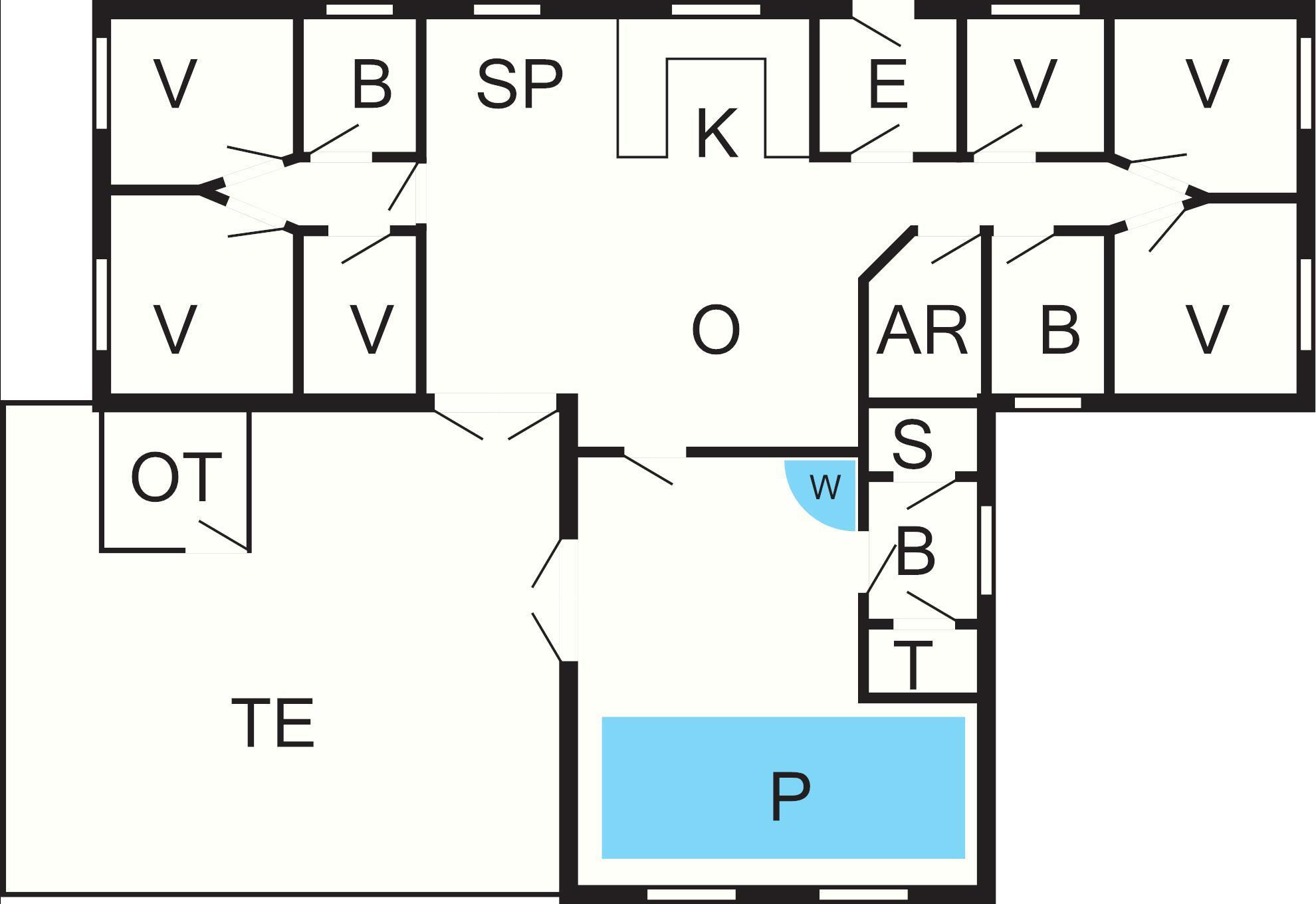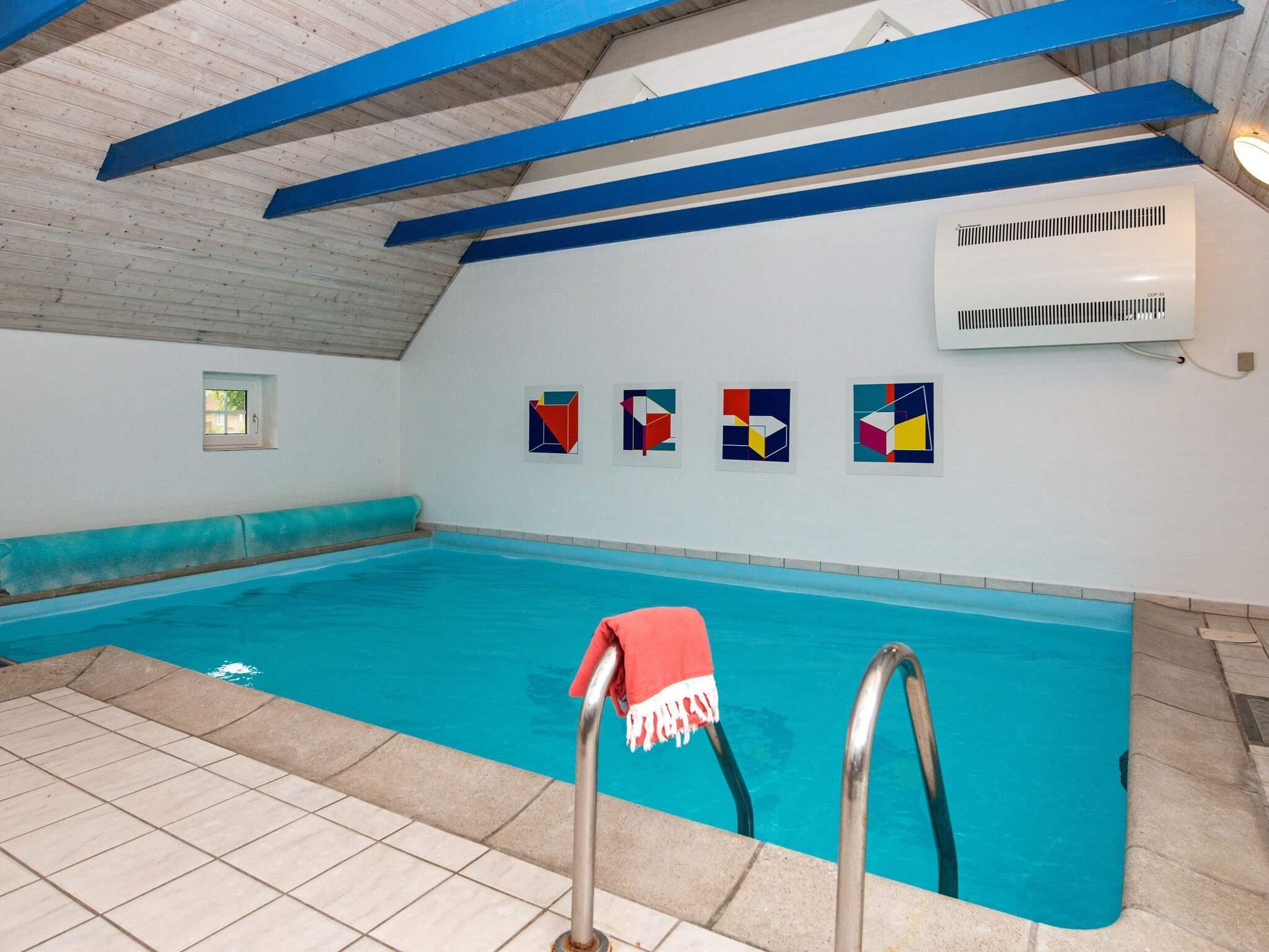 Sommerhus med swimmingpool, spabad og sauna godt beliggende i plantagen i Vester Husby. Sommerhuset er indrettet med to afdelinger, hver med tre soveværelser og et badeværelse, hvilket gør det ideelt for flere familier at holde ferie sammen. Der er også badeværelse i forbindelse med pool- og saunaafdelingen. Alle badeværelser har gulvvarme.