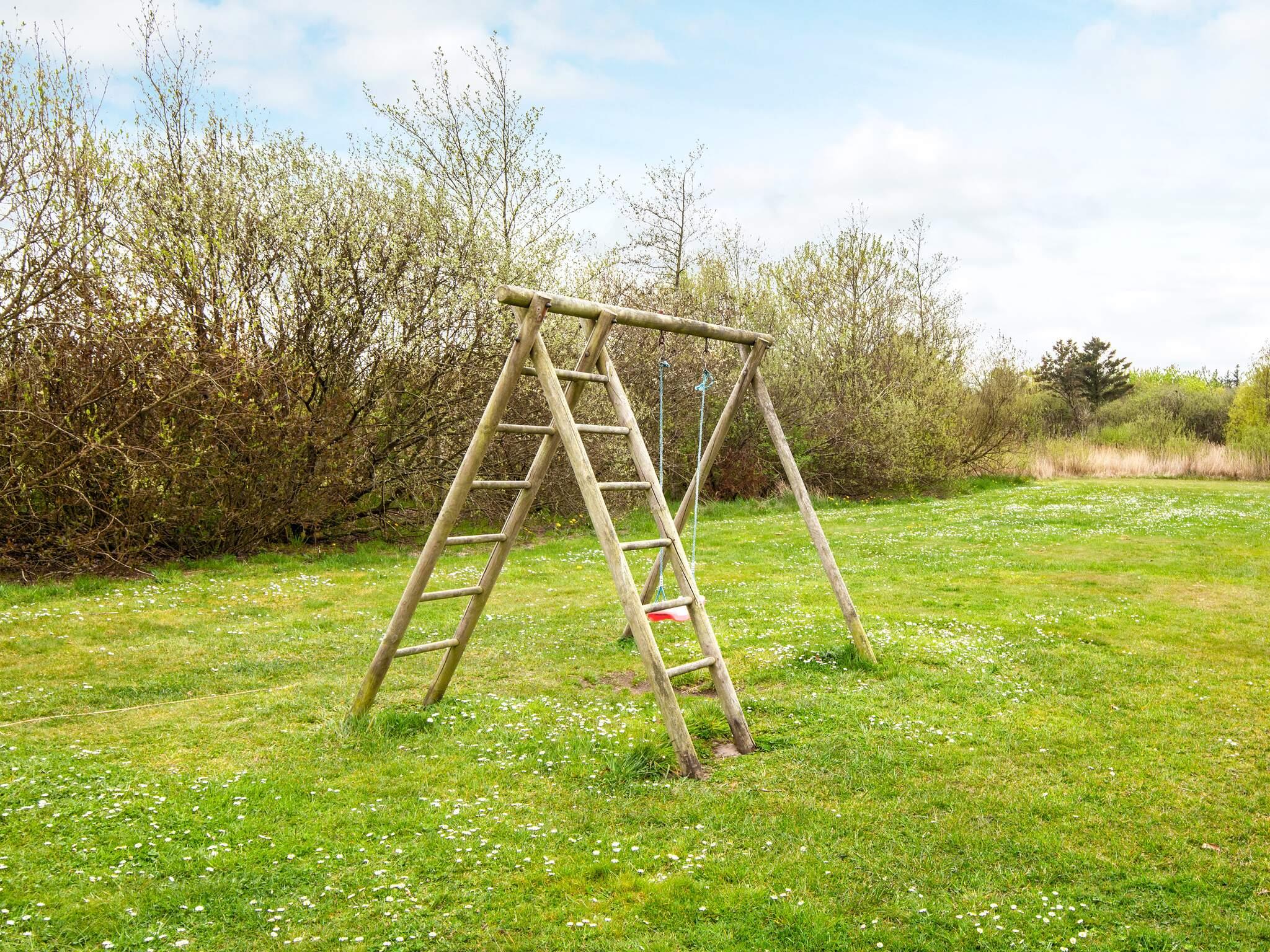 Der er en stor, lukket terrasse og gode havemøbler med udsigt til gynge og sandkasse til børnene.