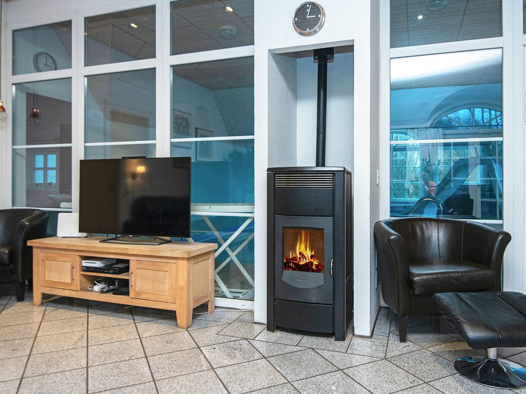 1 Opholdsstue: Brændeovn, tv, parabol, høj stol