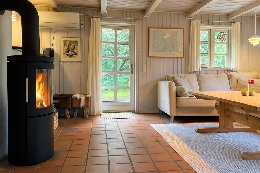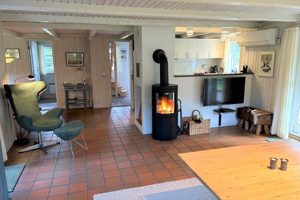 Når I træder ind ad døren til dette sommerhus, starter jeres ferie. Her venter ikke hverdagsopgaver eller pligter – kun tid til at være sammen og nyde alt det, der gør en ferie særlig. Huset er indrettet, så det er let at slappe af og lade tempoet falde. Køkken og opholdsrum hænger naturligt sammen, så hele familien kan være samlet, selv når maden skal tilberedes. Du kan stå og lave aftensmad med udsigt til grinende børn og gode samtaler ved spisebordet – uden at gå glip af noget. I stuen er der plads til afslapning med en film, en bog eller et brætspil, og når mørket falder på, kan I tænde op i brændeovnen og lade flammerne sprede varme og stemning. Badeværelset byder på en skøn sauna – et perfekt sted at mærke roen brede sig, mens kroppen bliver gennemvarm. Det hele dufter, lyder og føles som ferie – en pause fra hverdagen, hvor nærvær og glæde fylder rummet.