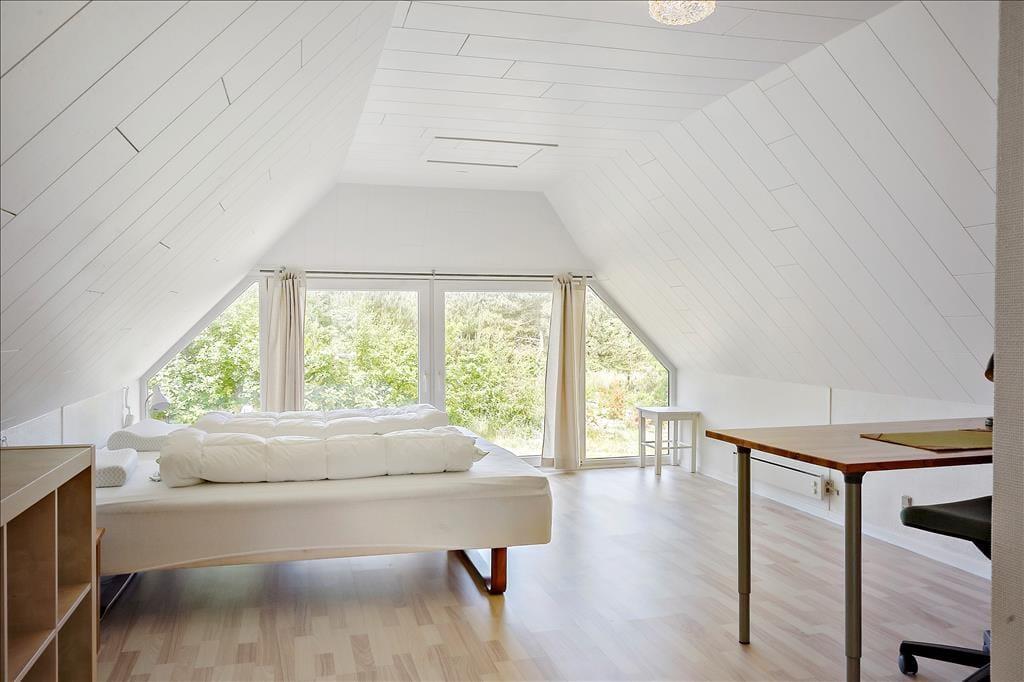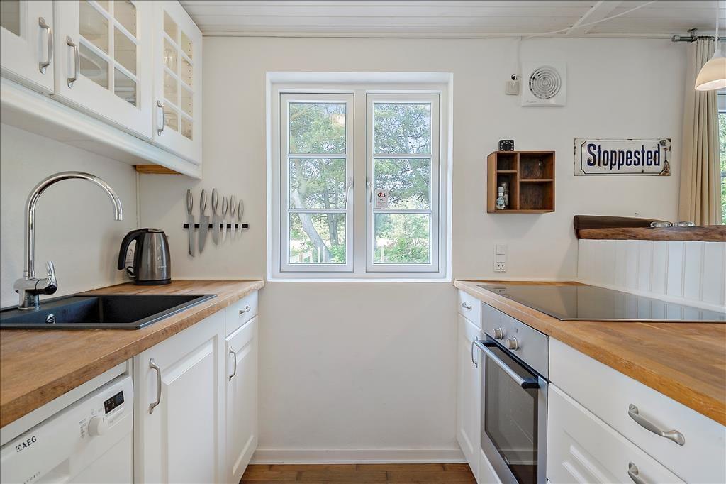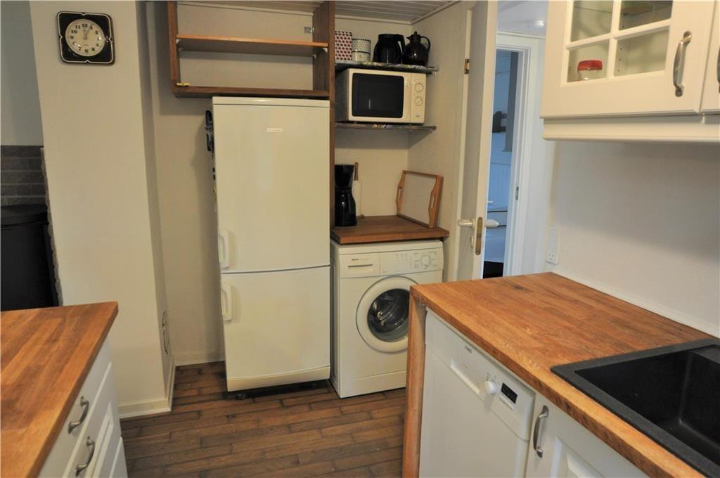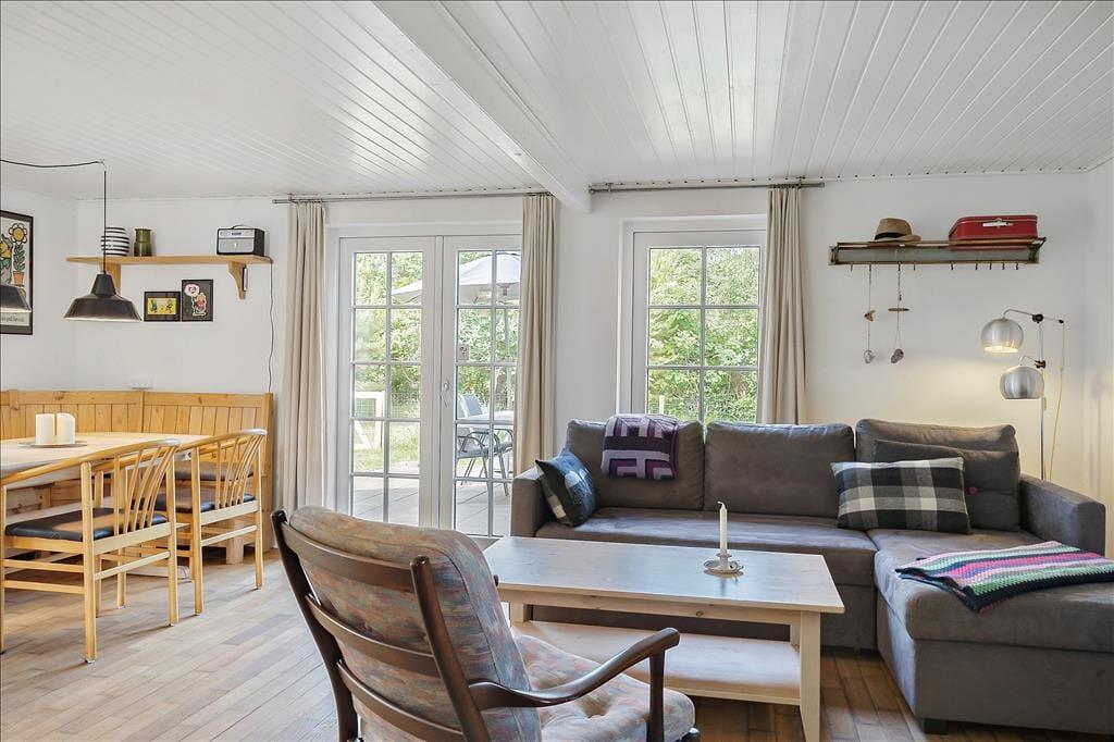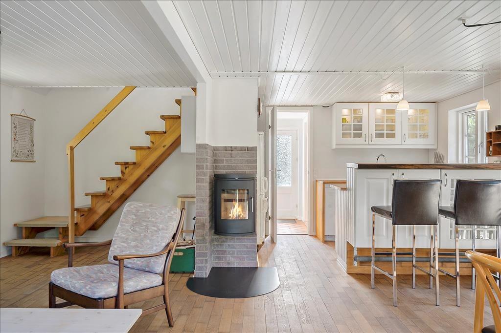 Træd ind i huset og mærk roen sænke sig. I kan sætte jer godt til rette på de høje barstole ved det rummelige køkkenbord, mens madlavningen går i gang. Her er plads til nærvær, grin og dybe samtaler – uanset om I står og snitter grøntsager, slapper af i stuen eller allerede har taget plads ved spisebordet. Hele rummet er bundet sammen på en måde, der inviterer til fællesskab. Selv de firbenede familiemedlemmer finder sig hurtigt til rette – de kan trygt bevæge sig rundt på køkkengulvet, mens de nyder at være midtpunkt i jeres samvær. Når maden er spist og opvasken klaret, kan I synke ned i sofaen og lade varmen fra den knitrende brændeovn brede sig i kroppen. Her er det let at give slip og bare være – måske med en kop te i hånden og lyden af latter fra dem, I holder af, som baggrundstæppe til aftenen. Huset emmer af hjemlig hygge og er en perfekt ramme for tid sammen, dog er det vigtigt at nævne, at huset ikke er egnet til børn, og derfor bedst egner sig til voksne, som søger fred, kvalitetstid og ro.