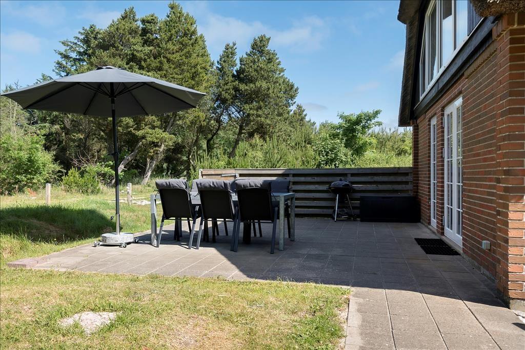 Når vejret er mildt – eller måske endda strålende – vil I uden tvivl blive draget mod de dejlige udendørsarealer. Her er det meste af grunden hegnet ind, hvilket betyder, at jeres hunde frit og trygt kan løbe omkring, snuse til det hele og nyde friheden, mens I selv slår jer ned i de komfortable havemøbler. Måske med en god bog, måske med et glas bobler i hånden – eller måske bare i stilhed, med den friske luft og naturens lyde omkring jer. Stemningen på grunden er helt særlig, næsten meditativ, og indbyder til lange, rolige samtaler, hvor der er tid til både alvor og latter. Og når aftenen falder på, og solens sidste stråler rammer landskabet i gyldne toner, kan I sidde sammen og nyde det syn, som kun en solnedgang i Vestjylland kan levere. Her er plads til både eftertanke og nærhed – og det er nemt at føle sig hjemme.