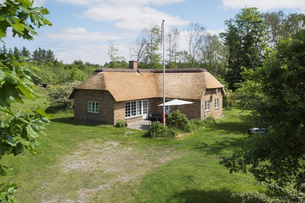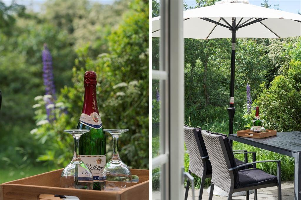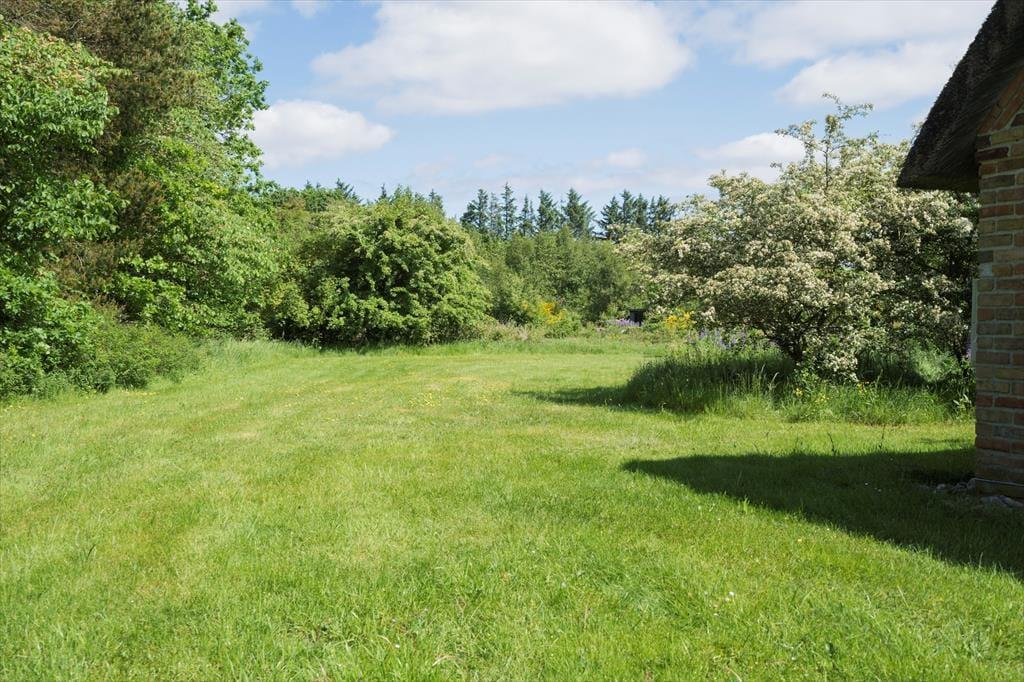 Huset ligger på en uforstyrret naturgrund, skærmet af buske og træer, så I får følelsen af at være helt alene – på den gode måde. Der er ingen trafik, ingen larm; kun fuglesang og det stille susen i græsset. Udenfor venter terrassen som et lille åndehul midt i den fredelige natur. Det er et oplagt sted at slå sig ned og nyde både stilheden og hinandens selskab. Når solen er på vej ned, og lyset bliver gyldent, kan I sidde her og mærke dagen falde til ro. Måske begynder I også dagen herude – med en kop kaffe, et tæppe over skuldrene og duggen, der langsomt fordamper, mens solen stille stiger op. Den friske luft og naturens nærvær gør det let at mærke, hvor godt det er at være på ferie. Herude er der plads til at være til stede og nyde nuet.