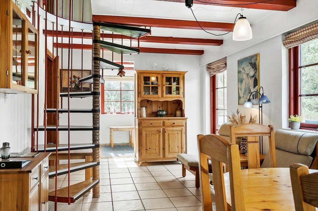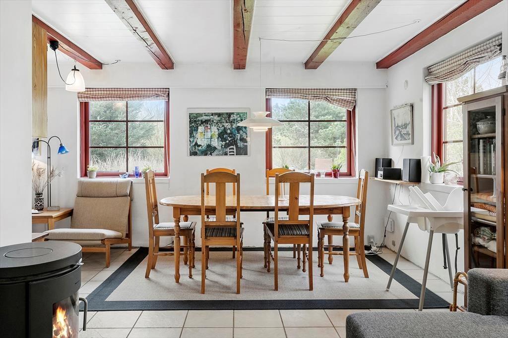 Når I træder ind i feriehuset, mødes I af en rolig og hyggelig atmosfære, som med det samme skaber en følelse af ferie og overskud. Her er der plads til både store og små øjeblikke, og de firbenede familiemedlemmer er lige så velkomne som jer. I stuen kan I samles om et kortspil, en god snak eller blot nyde brændeovnens knitrende varme, der spreder ro og nærvær i rummet. Trappen fører jer op til første sal, hvor de stille morgener kan nydes med en kop kaffe, inden resten af familien står op. Hele feriehuset er skabt til samvær, og hver krog inviterer jer til at sænke tempoet og nyde tiden sammen uden afbrydelser.
