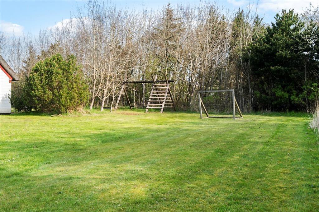 Udenfor fortsætter roen og nærværet på den ugenerte naturgrund, hvor træerne danner en naturlig ramme, som skærmer jer fra omverdenen og giver jer et sted helt for jer selv. Her kan I høre havets brusen i baggrunden, mens I leger, spiller bold, gynger de mindste eller bygger fantasifulde sandslotte i sandkassen. De firbenede familiemedlemmer kan også nyde friheden og alle de spændende dufte, mens I fordyber jer i samvær og lege. Når dagen går på hæld, kan I tænde op i grillen og spise aftensmaden på terrassen, hvor I sidder i læ og mærker dagens sidste varme solstråler. Her kan I tale om dagens oplevelser, lytte til fuglenes sang og lade roen synke ind, før natten langsomt falder på. Det er et sted, hvor I virkelig kan være sammen – helt uden forstyrrelser.