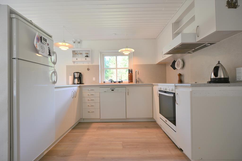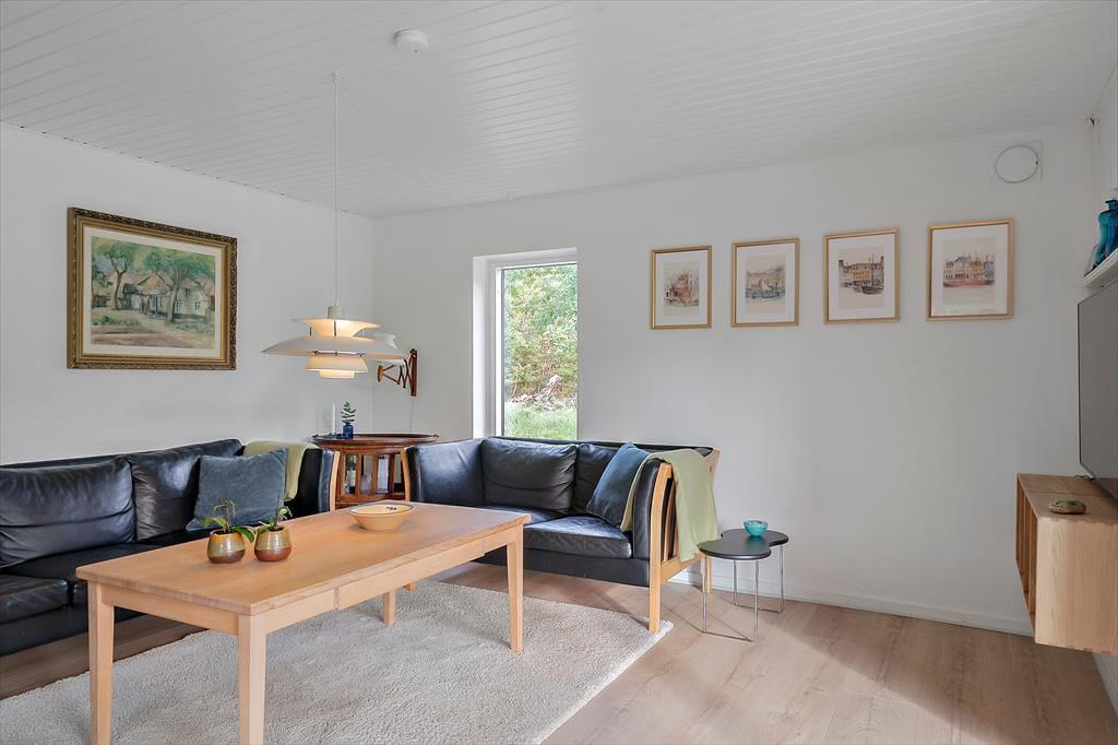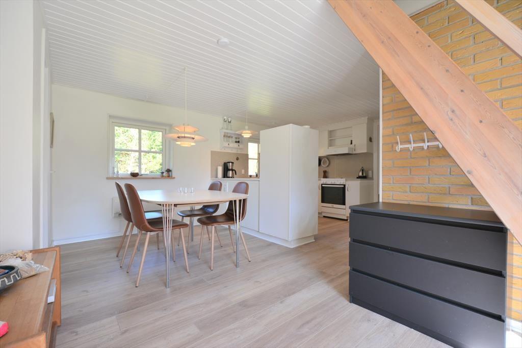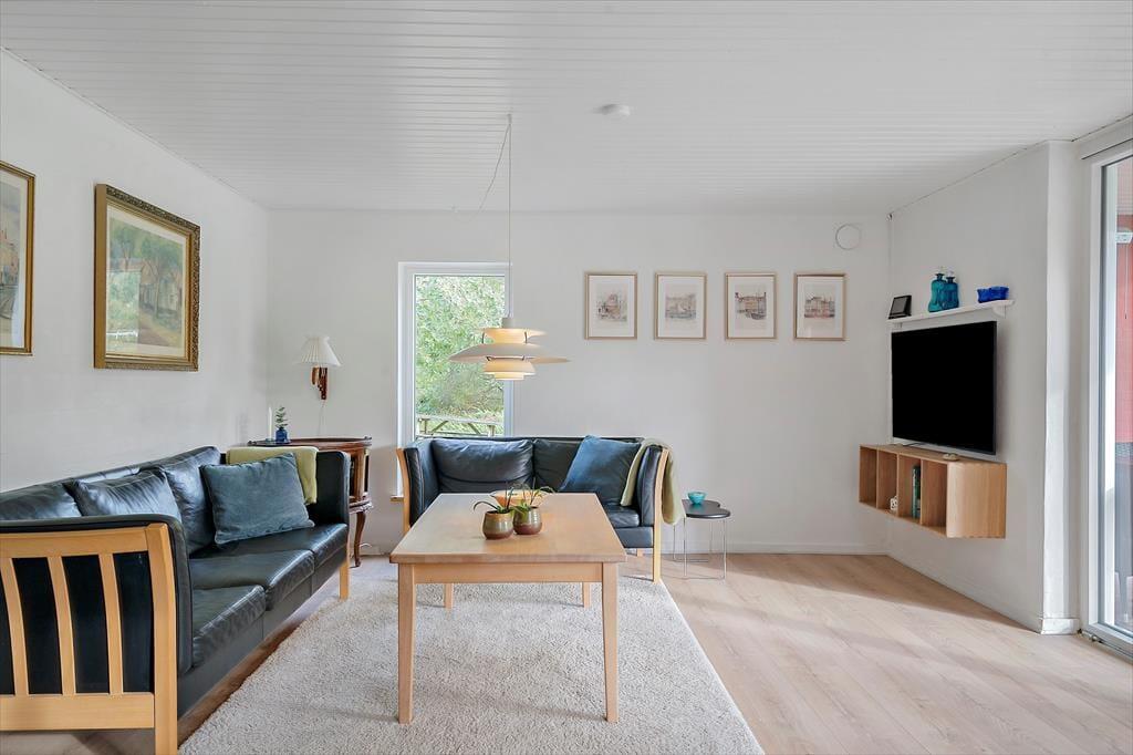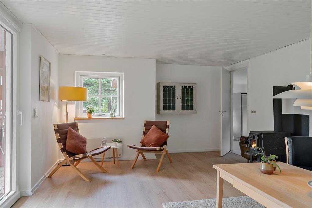 Forestil jer at træde ind i et sommerhus, hvor hyggen møder jer allerede i døren og skaber en følelse af ro og tilstedeværelse. I kommer ind til et samtalekøkken, der ligger i naturlig forbindelse med spiseområdet, så I kan være sammen hele tiden – uanset om nogen laver mad, dækker bord eller bare lytter med i samtalen. Stemningen er varm og personlig, og rummene glider harmonisk ind i hinanden på en måde, der gør det let at falde ned i tempo. I stuen står brændeovnen klar til at lade den knitrende varme brede sig og danne baggrund for stille pauser, spil, gode bøger eller lange samtaler. Den indendørs sauna giver jer en rolig mulighed for dyb afslapning, mens resten af huset indbyder til nærvær i hverdagens helt enkle former. Lys, varme og rummelighed arbejder sammen om at gøre jeres ophold afslappet og trygt – uden at der skal mere til end jeres tid og hinanden.