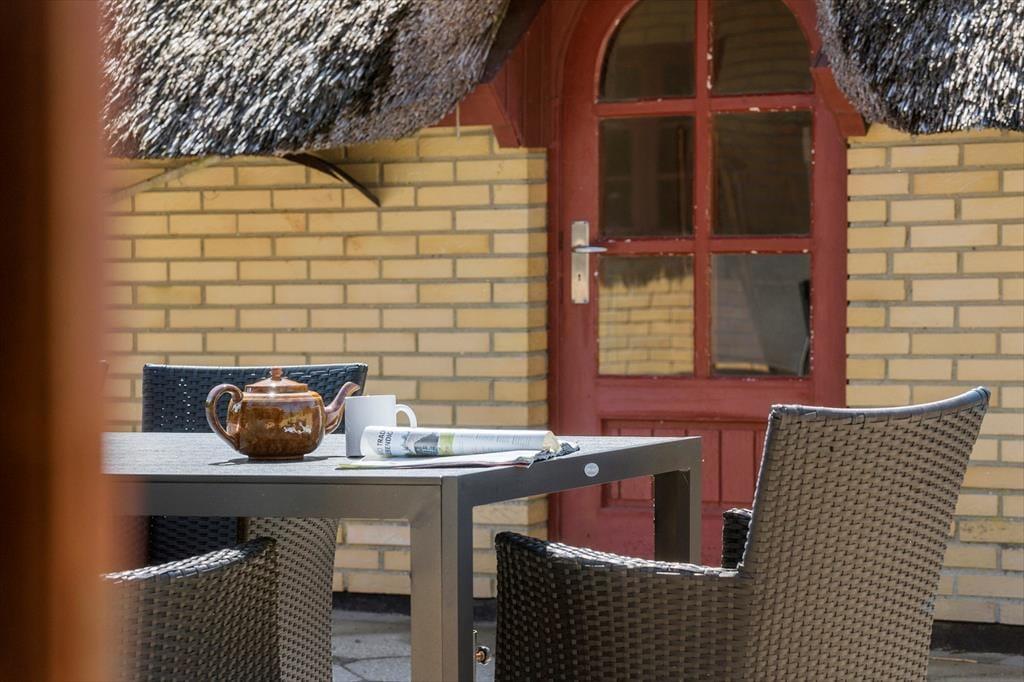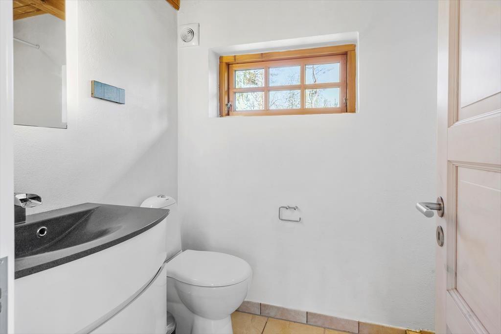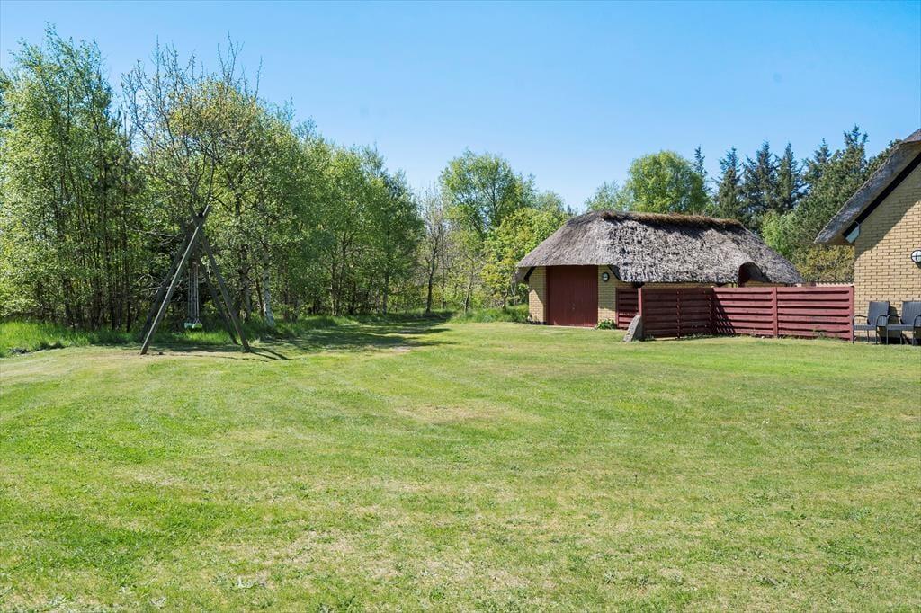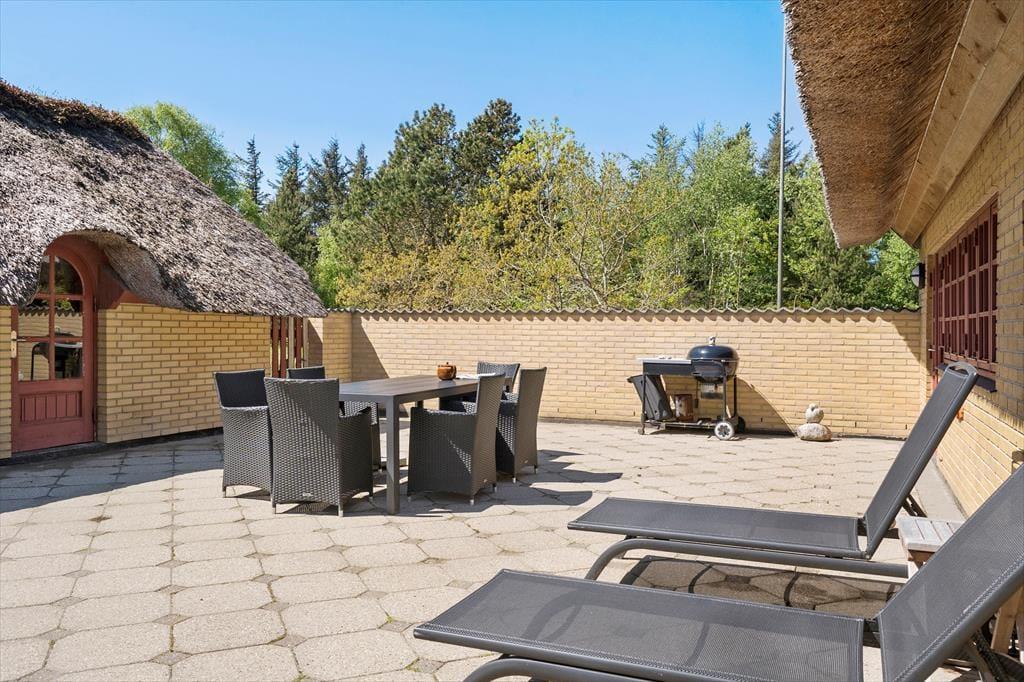Gå direkte fra stuen og ud til den store, skønne og lukkede terrasse, her er der godt med muligheder for at solbade på de behagelige liggestole i fred og ro, imens I nyder solens stråler der både giver en dejlig varme og en flot kulør. Huset ligger på en stor og dejlig naturgrund der er omgivet af træer, her er der plads til diverse udendørs aktiviteter om så I er til fodboldkamp for hele familien eller en gyngetur i gyngestativet for de mindste.