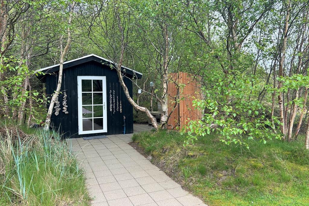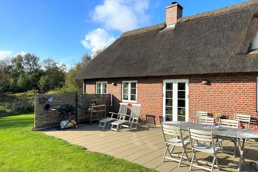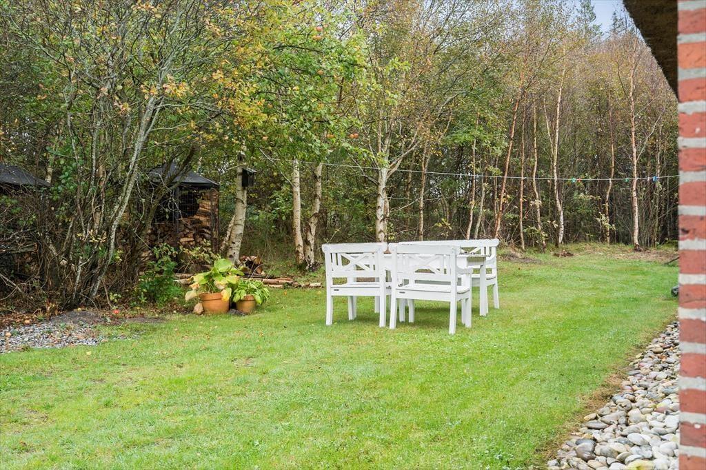 Huset ligger på en stor naturgrund hvor I vil opleve at der er gode læ-forhold, og på den dejlige store sydvendte terrasse kan I nyde solen det meste af dagen, eller lav et lækkert måltid på husets gasgrill og nyd det på terrassen i den lune aftensol. Gå på opdagelse på den ugenerede naturgrund der har en masse hyggelige stier som løber rundt på grunden. Her er der rig mulighed for at udforske naturen uden at skulle forlade grunden.