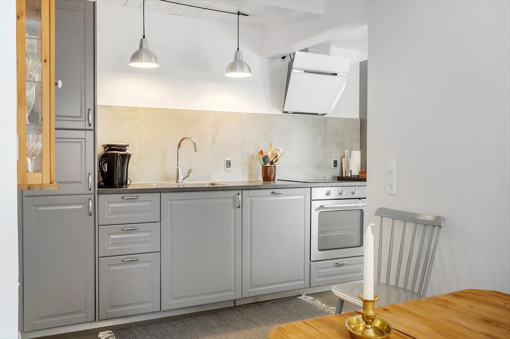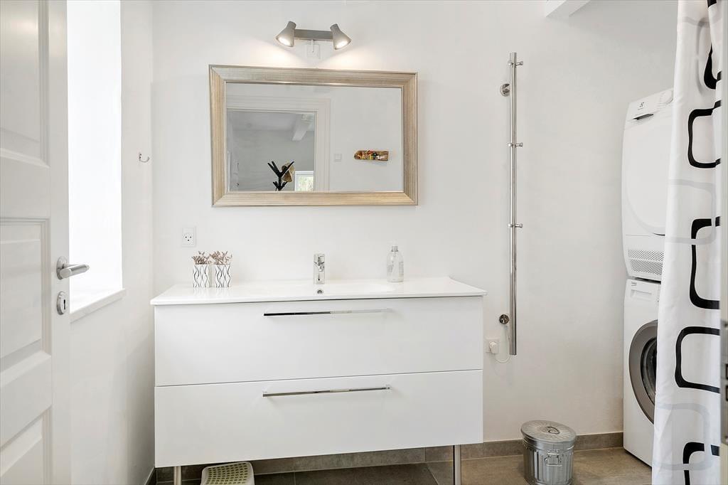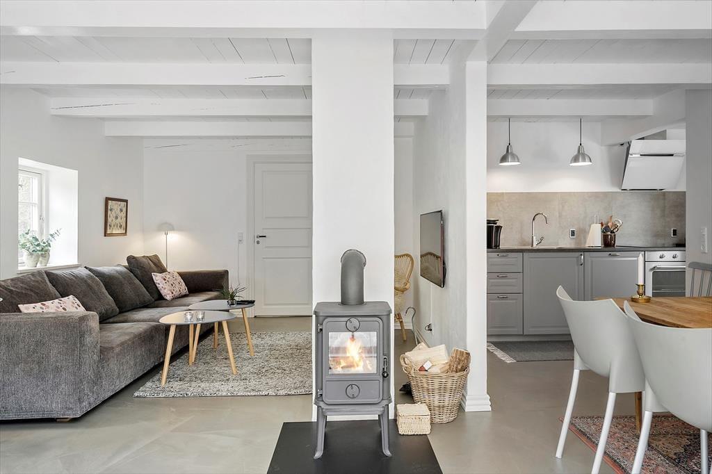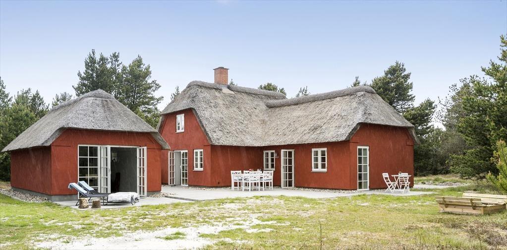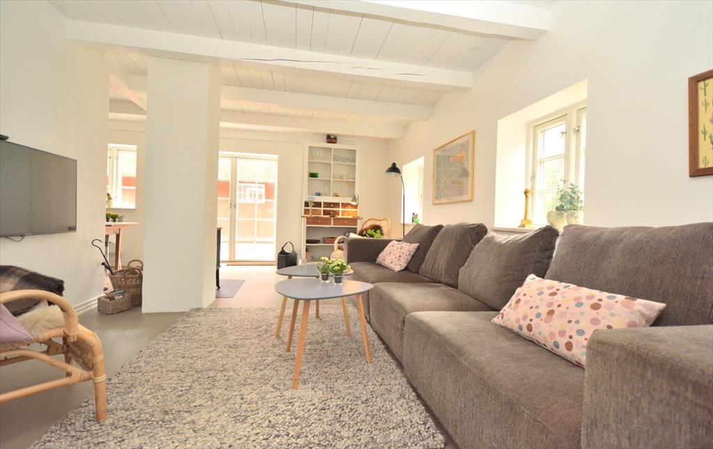 Indretningen er særdeles hyggeligt og meget smagfuldt, med ”New-Yorker” polerede betongulve i alle rum, på nær badeværelse og entre, som har klinkegulve. Lyse og flotte rum overalt. Hvidmalede lofter med store flotte bjælker. Der er gulvvarme i entre og badeværelse. Alle værelser er indrettet super charmerende, og i individuel stil. Stuen er flot indrettet, og har løse tæpper på gulvene. Køkkenet er særdeles funktionelt, nyt, og meget veludstyret. Indretningen af 1. sal, med dobbeltværelse, og plads til børnebord og lille TV giver et super charmerende miljø. ANNEX – MULTIRUM med bordfodbold og dart. Aktivitetsrummet har spændende vinduesparti i gavlen, her kan du også sætte din cykel, surfbræt, barnevogn m.v. ind.