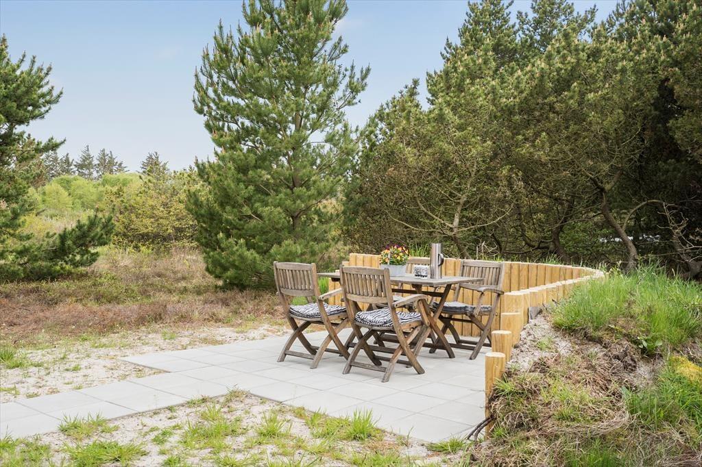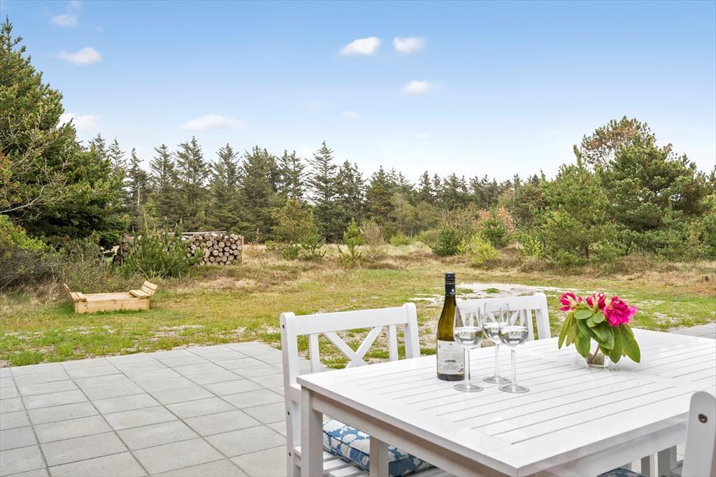 Huset har det skønneste udeområde. Den store grund på godt 5000 kvm er ren natur, lyng og skovgrund, og her kan opleves rådyr, harer og andet vildt som ofte passere over grunden. Flotte terrasser omkring huset, hvor der altid er mulighed for at få både sol og læ. Terrasser med gode havemøbler.