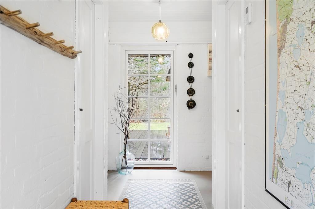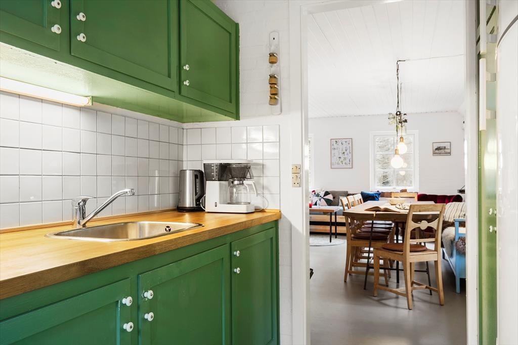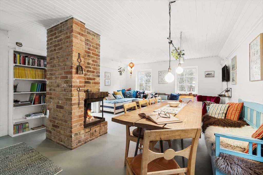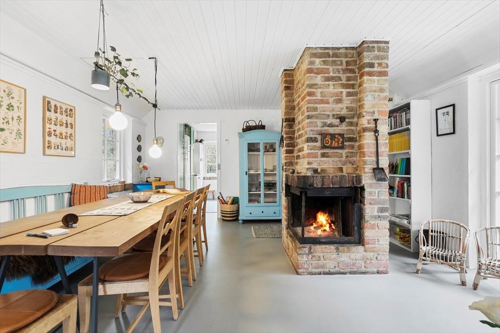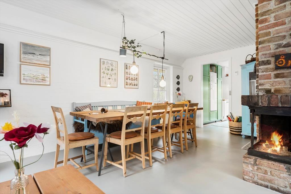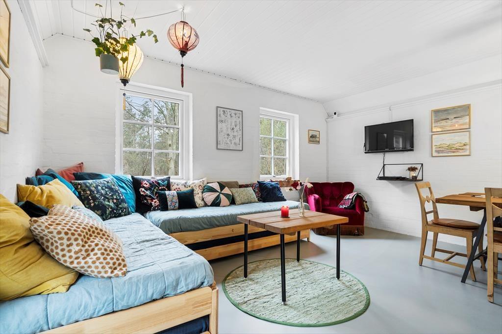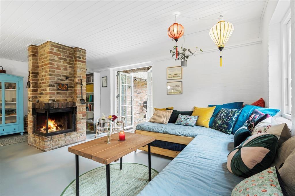 Når I træder ind i dette hyggelige og smukke sommerhus, bliver I mødt af en vidunderlig landlig charme der med sine sprudlende og karakteristiske farver bare emmer af afslapning, hygge og nærvær på allerhøjeste plan. Sæt jer rundt om det store plankebord i den hyggelige spisestue som er slået sammen med stuen. I stuen troner den flotte og rustikke og pejs, her kan I nyde de sene aftner imens pejsen knitrer og solen går på hæl, eller tag et slag kort når I trænger til en afslappende aften derhjemme. Nyd de tidlige morgner foran pejsen med morgenkaffen i hånden og lad roen sænke sig.