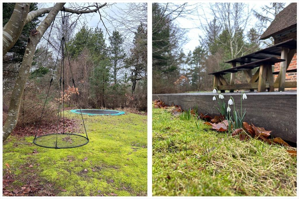Den store skønne naturgrund er oplagt til de mange solskinstimer. Børnene vil nyde trampolinen, gyngen og så er der masser af plads til boldspil i haven for hele jeres familie, når forældrene er trætte, kan I slå jer ned på den skønne sydvendte træterrasse her kan I nyde solens varme imens børnene leger rundt i haven med store smil og en herlig latter. På de særligt varme danske sommeraftner ligger terrassen op til at I kan tage aftensmaden med udenfor og nyde den friske luft og fuglenes smukke sang.