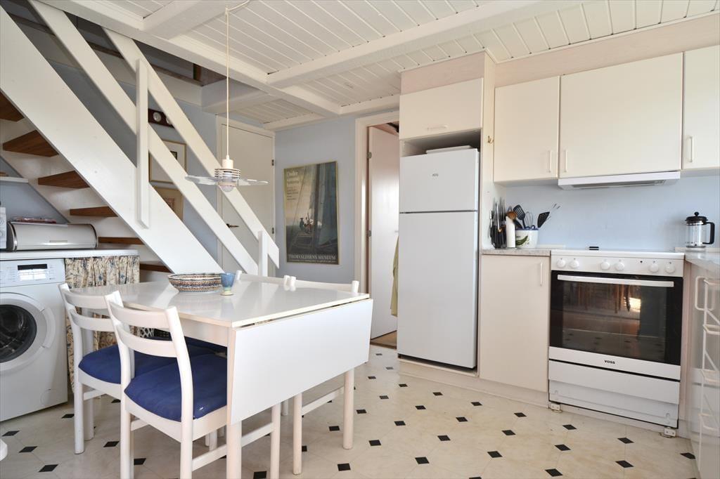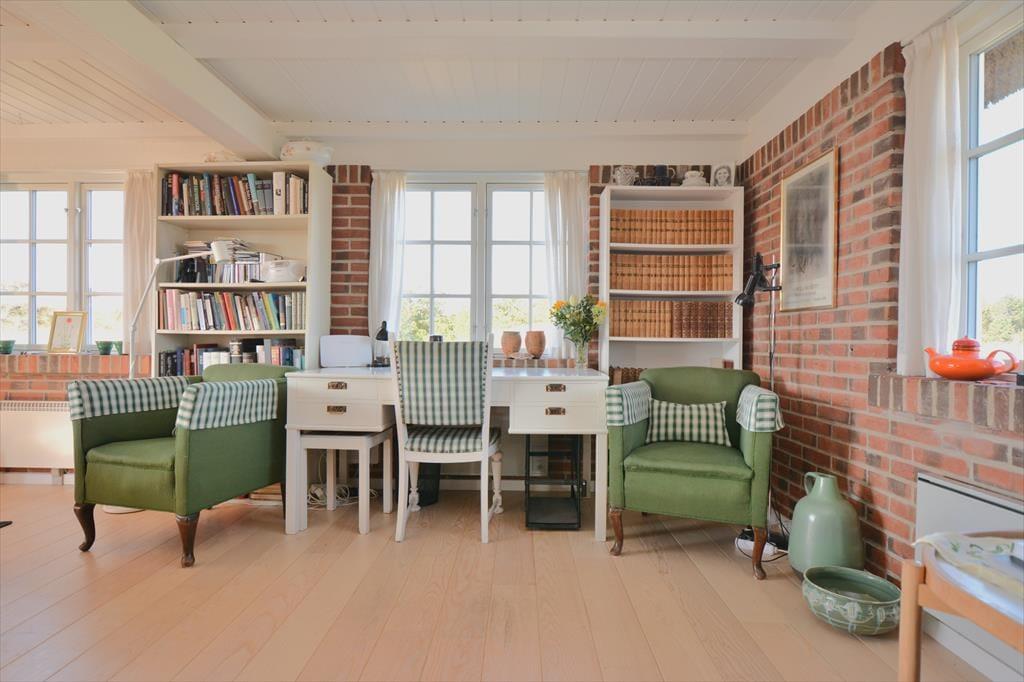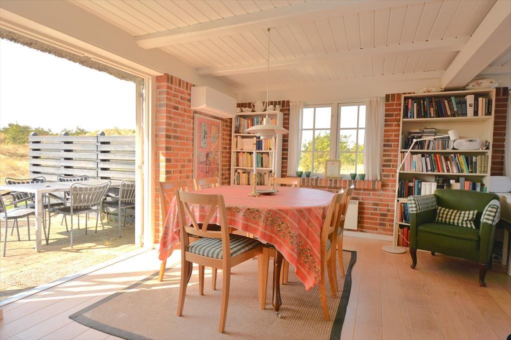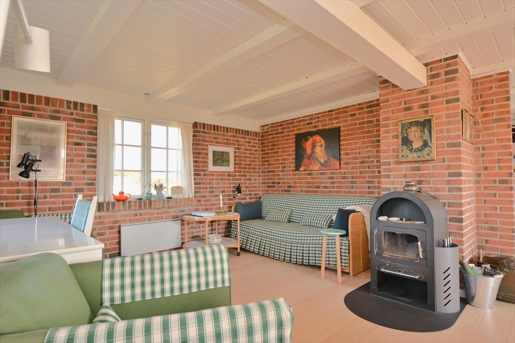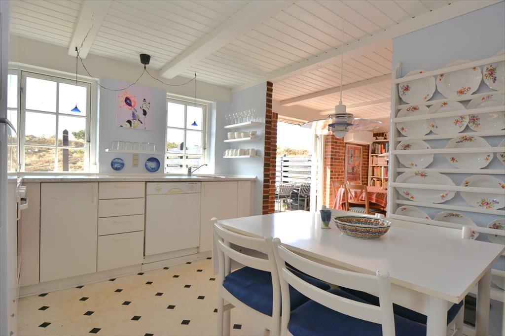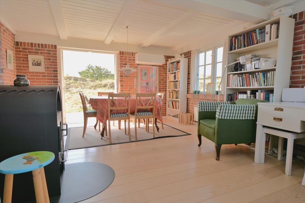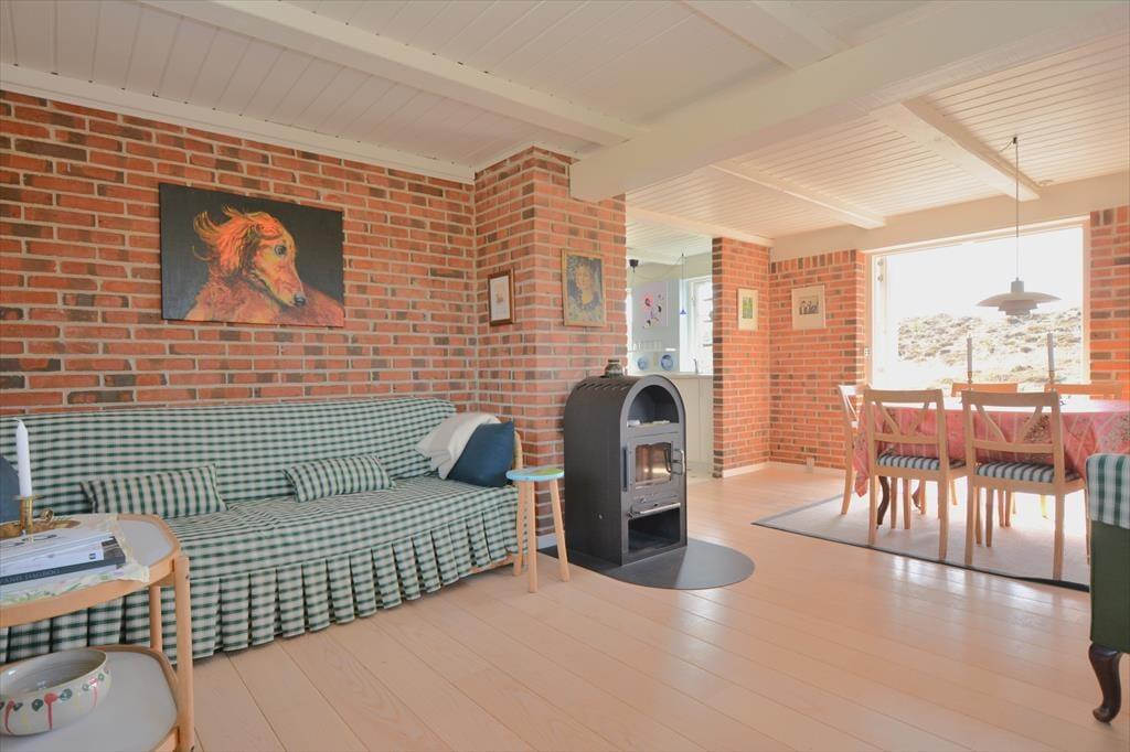 Sæt jer ned omkring spisebordet og nyd den fantastiske udsigt ud over de bugtede og bakkede klitter der strækker sig helt ned til det vilde og vindblæste Vesterhav. Det herlige lys indfald og de flotte friske farver rundt i huset giver en herlig følelse af hygge og afslapning, men også en påfaldende dejlig tid til fordybelse, og med det dejlige skrivebord har I masser af tid til at fordybe jer i lige netop det I vil. Trænger I til en afslappende aften efter en dag med at udforske området, så smid jer foran den hyggelige brændeovn og nyd dens varme stråler og hyggelige knitren.