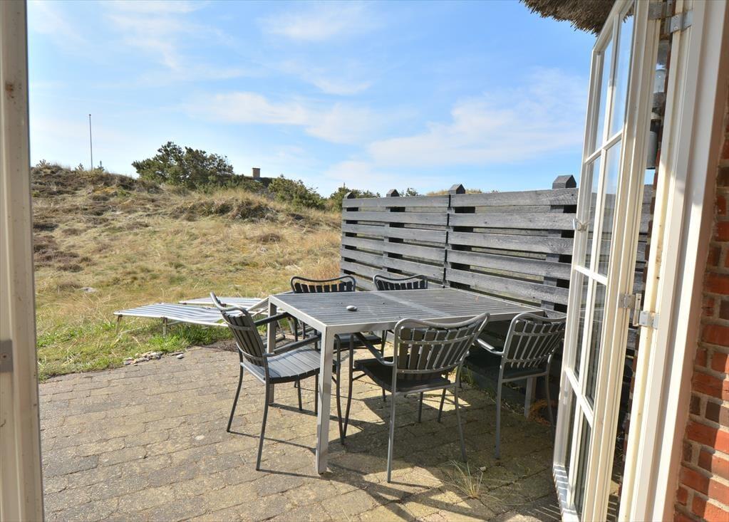 Gå udenfor og nyd den fantastiske, friske og salte havluft der hersker over området og den fortryllende udsigt udover det flotte klitlandskab. Sæt jer på en af de to dejlige terrasser, den ene mod syd og den anden mod øst, så her har i god mulighed for at nyde solens varme stråler hele dagen og havets brusen kan høres i det fjerne, eller smid jer på en af liggestolene og få en smuk sommerlig kulør. Snup morgenkaffen med ud på den østvendte terrasse og nyd den flotte solopgang og den vidunderlig ro som er over den flotte store naturgrund.