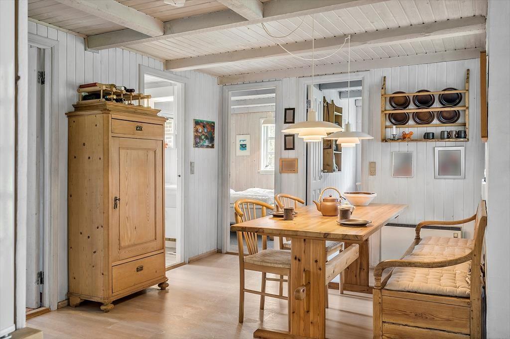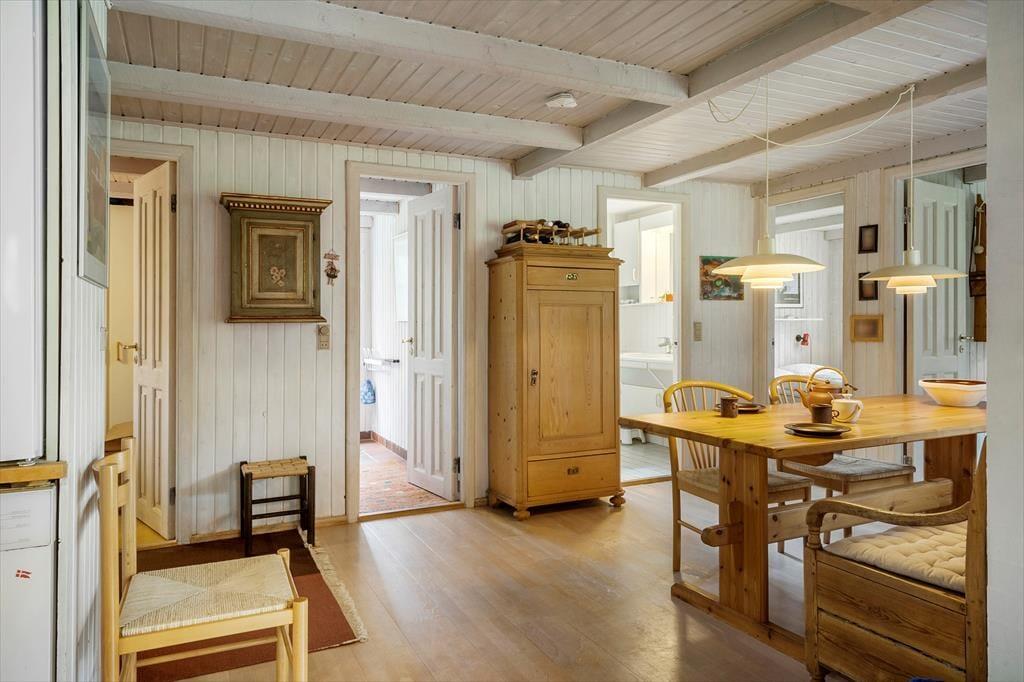 Sommerhusets køkkenalrum indbyder til hyggelige stunder med familien. Her er der rig mulighed for kvalitetstid med familien, enten over spisebordet til et spil kort, eller foran brændeovnen om aftenen efter en dukkert i havet ved solnedgang. Køkkenalrummet giver også anledning til at I kan lave mad i køkkenet mens børnene spiller brætspil ved køkkenbordet, her kan I stadigvæk tale sammen alle sammen, mens der spreder sig en skøn duft af mad i hele huset. Husets værelser giver mulighed for at I kan fordybe jer i en god bog i ro og mag, uden at være langt fra resten af familien.