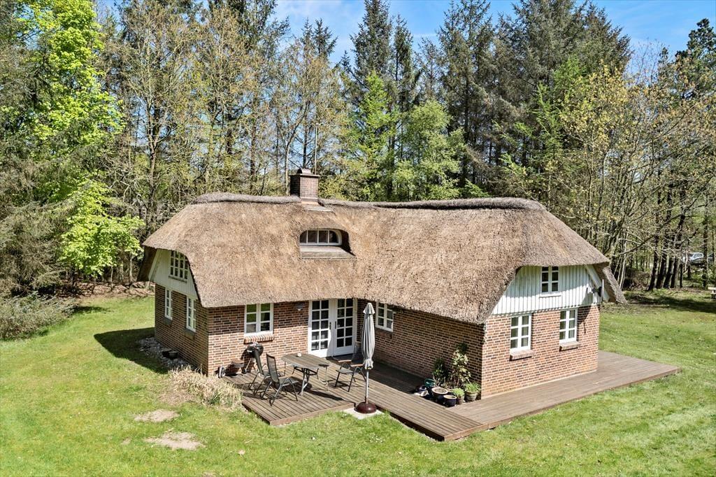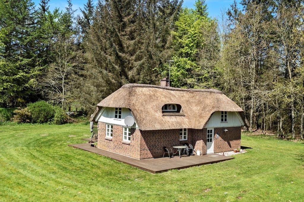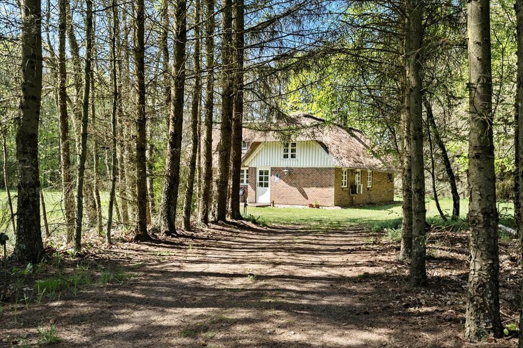 Huset ligger uforstyrret på en stor og ugeneret naturgrund indhyllet af træer hele vejen rundt, dette er med til at skabe den behagelige ro som omfavner hele grunden. Her er der rig mulighed for at I kan give den gas på beachvolleybanen, som fodboldspillere eller I kan benytte terrassen og nyde solens stråler mens I ser børnene rende rundt og lege på græsplænen.