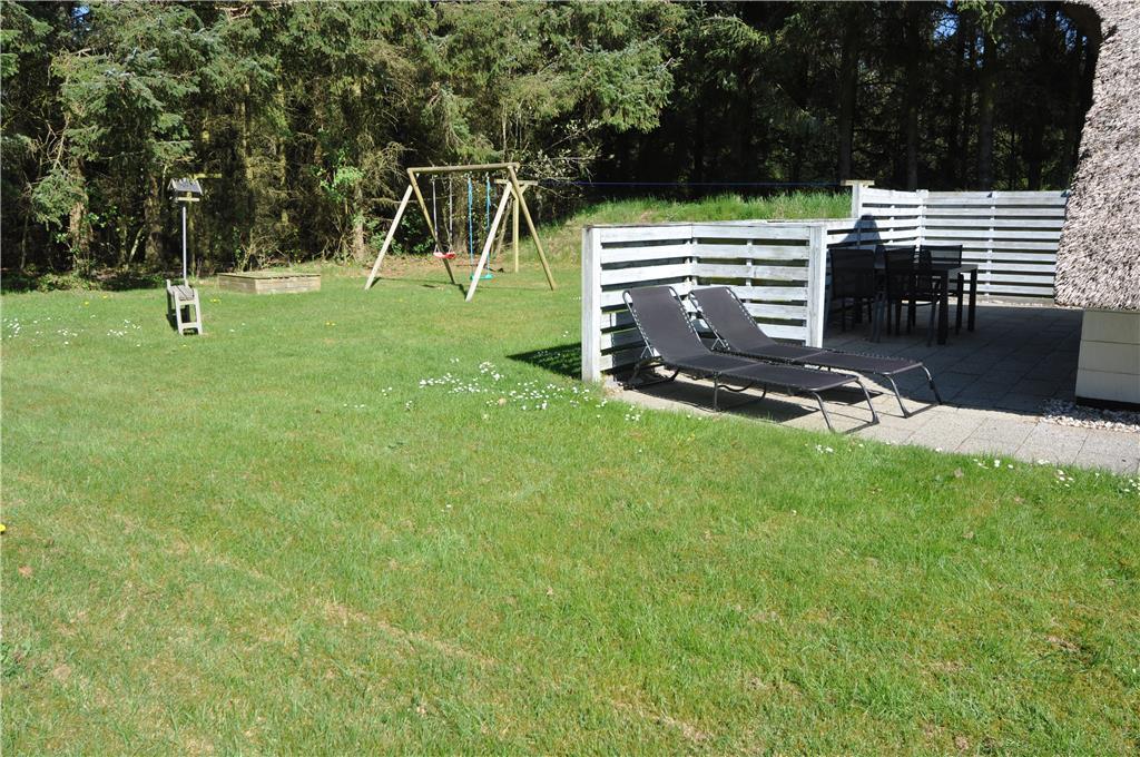 Begynd morgenen langsomt inden resten af familien er stået op, med en varm lækker kop kaffe på den øst vendte terrasse og se solen gå op og hør fuglenes herlige sang. Når de mindste er stået op, er der gode muligheder for dem i haven, der er et herligt gyngestativ der opfordrer til utallige gyngeture og den dejlige sandkasse der er perfekt til at bygge sandslotte i, eller tag en fodboldkamp for hele familien på den store plæne, her kan I rigtigt give den gas og få sved på panden. Nyd jeres aftensmad på den østvendte terrasse og se solen gå ned og duggen der langsomt begynder at falde.