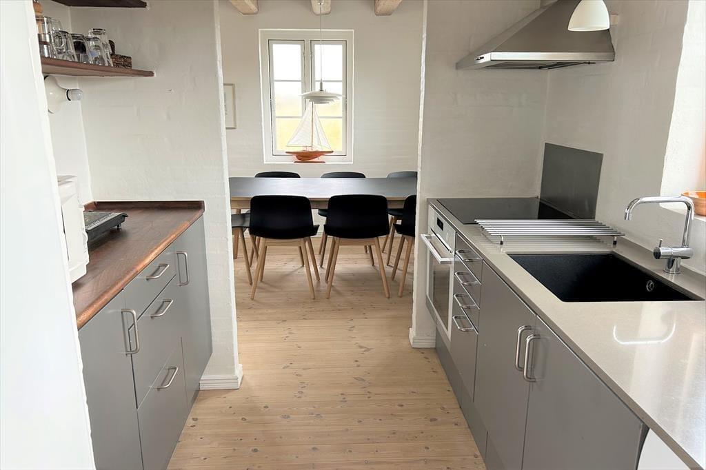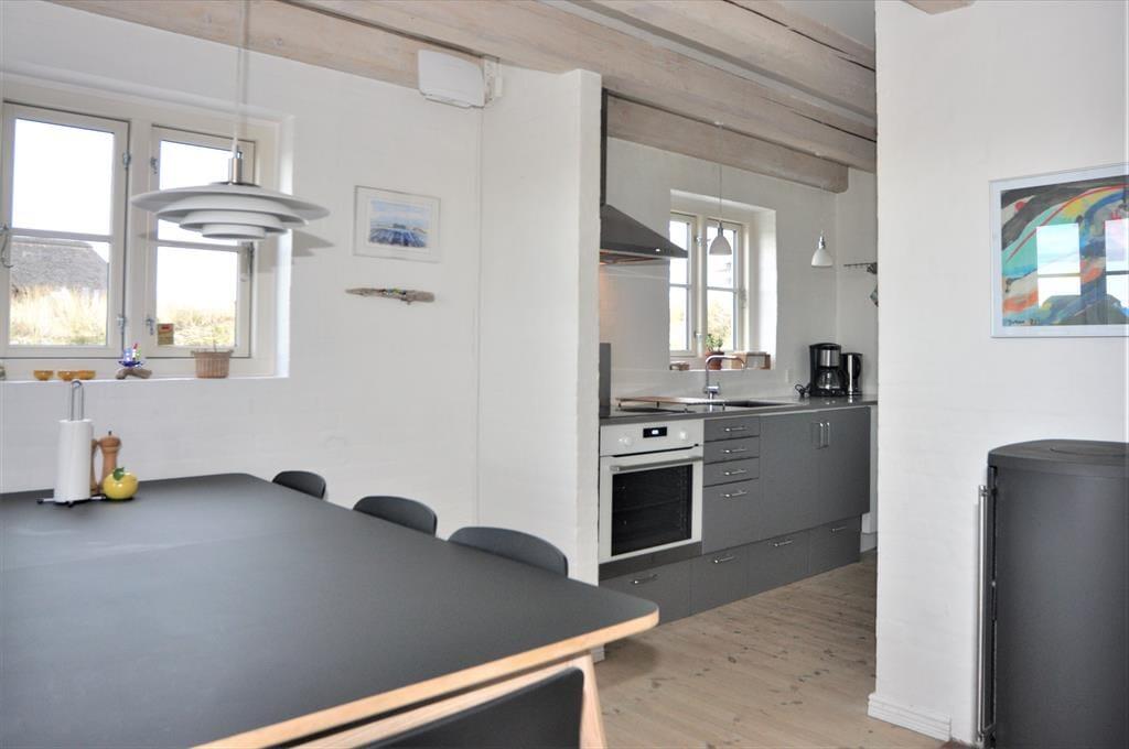 Træd ind i dette feriehus og bliv mødt af flotte og veludførte grå detaljer der som en rød tråd guider jer gennem husets flotte rum. Her er der uendelige muligheder for fantastiske stunder for hele familien. Smid jer i den pæne og komfortable sofa der bare kalder på at bliver brugt og lytte til brændeovnens knitren og nyd dens varme der langsomt fordeler sig i rummet og varmer jer op, og nyd synet af loft til kip og synlige bjælker der giver en herlig charme og varme til huset. Sæt jer i sofaen en sommeraften hvor solen er ved at gå ned og nyd den smukke udsigt ud gennem de store havedøre og se himlen skifte farve og natten gør sit indtog.