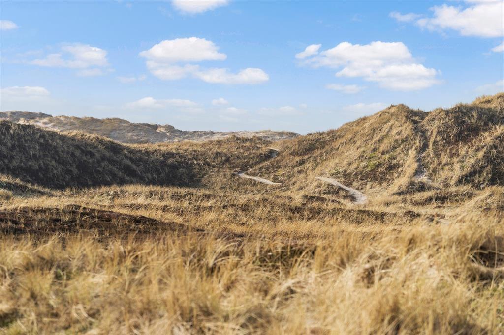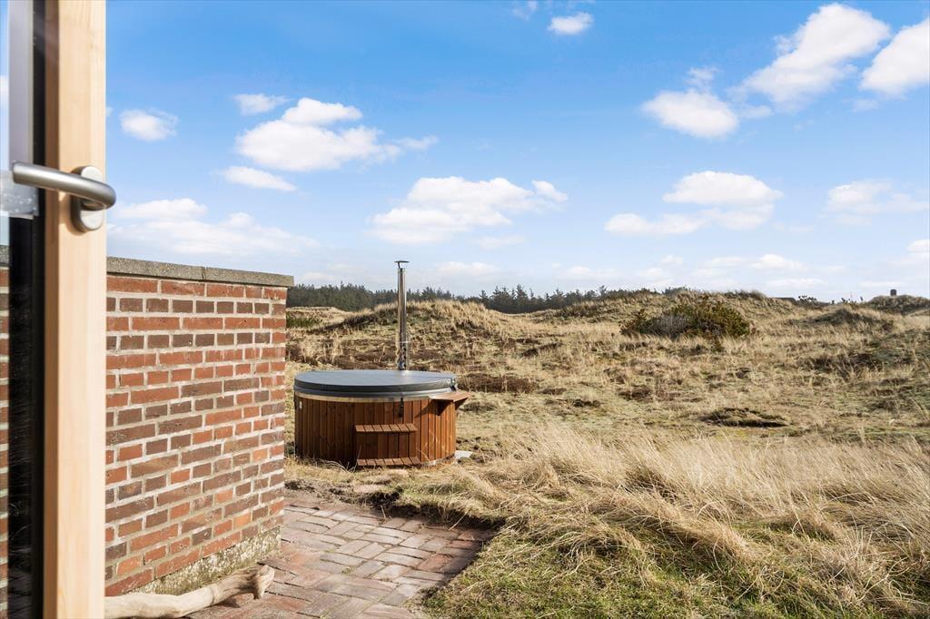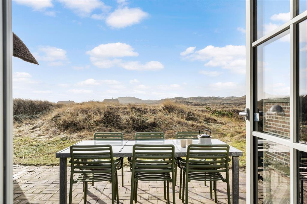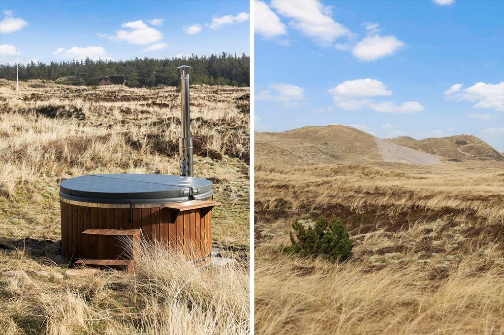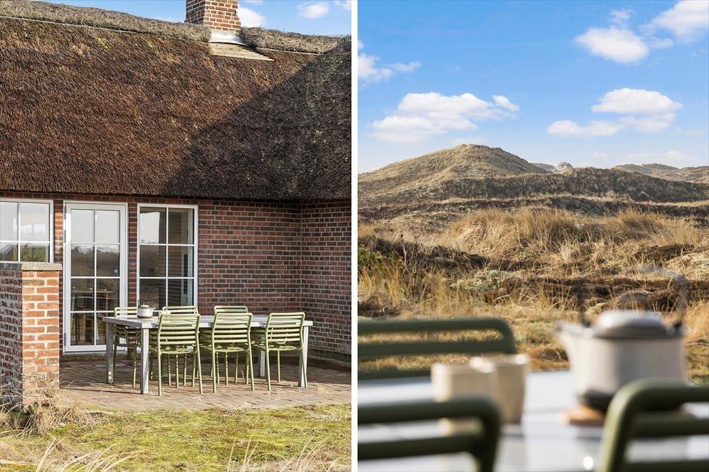 Nyd solens stråler på den store naturgrund der er solidt placeret i det flotte og betagende klitlandskab. Sæt jer på den sydvendte terrasse med direkte adgang til køkkenet og nyd de mange timers sol. Nyd jeres morgenkaffe på den smukke østvendte terrasse, her kan I nyde den smukke udsigt udover det herlige landskab ved Vesterhavet og høre fuglene synge dagen ind. Den store grund gør det oplagt at bruge meget af jeres ferie udenfor, og med både terrasser og liggestole kan I rigtigt slappe helt af.