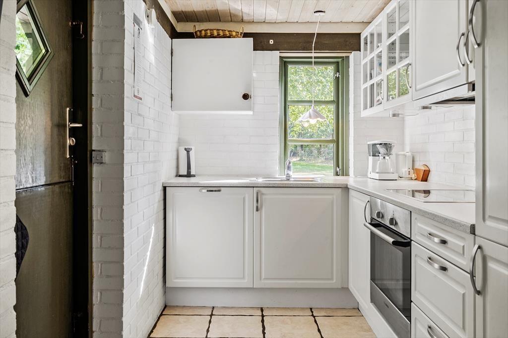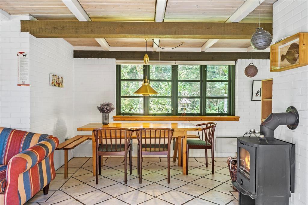 Grønne detaljer løber gennem huset som en rød tråd og guider jer fra rum til rum. Nyd den smukke udsigt fra husets rum, sæt jer omkring det hyggelige spisebord og nyd det fantastiske lysindfald og den flotte udsigt, eller tag et slag kort inden aftensmaden skal laves og nydes. Slå jer ned i den hyggelige stues dejlige sofaer og lad brændeovnen varme jer op imens I lytter til dens knitren, luk øjnene og nyd roen der hersker over huset, her kan I koble fra og komme væk fra hverdags trummerum imens I nyder hinandens selskab.