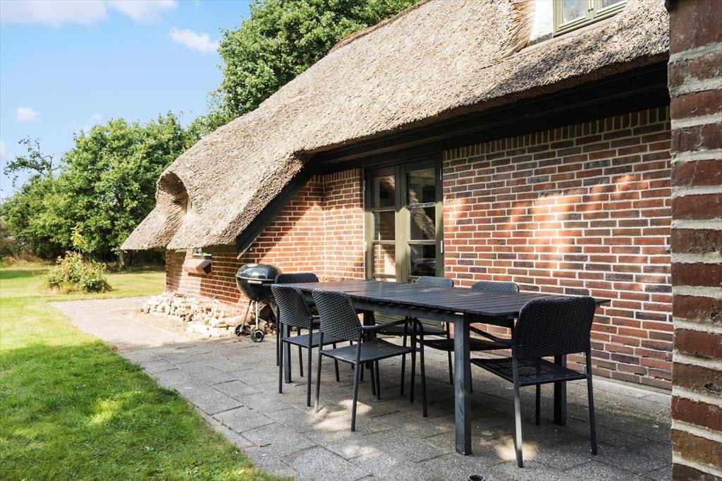 Lav en dejlig kop varm kaffe og sæt jer ude på den dejlige østvendte terrasse og nyd solen der langsomt stiger op på himlen og giver et fortryllende lyserødt skær over den naturskønne grund som er omgivet af træer og buske, der sammen med fuglenes morgensang skaber en helt utroligt rolig og fredfyldt atmosfære. Trænger I til at koble helt og komme ned i gear så smid jer på liggestolene og nyd solens stråler der langsomt varmer jer op og giver jeres hud en skøn sommerlig kulør. Lav aftensmaden udenfor på grillen og nyd den lækre duft af mad der langsomt spreder sig, og spis det under åben himmel imens fuglene stille synger natten ind og himlen skifter farve i takt med at solen går ned.