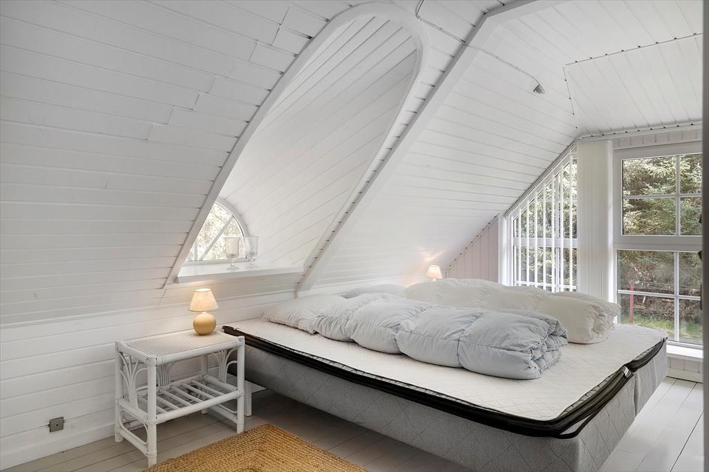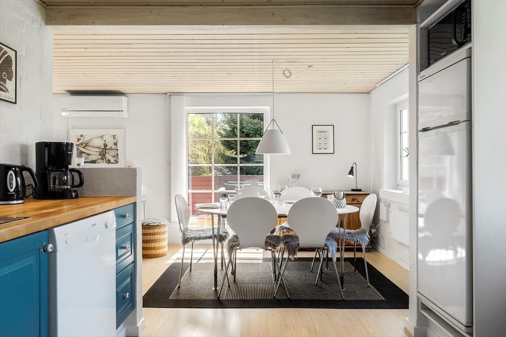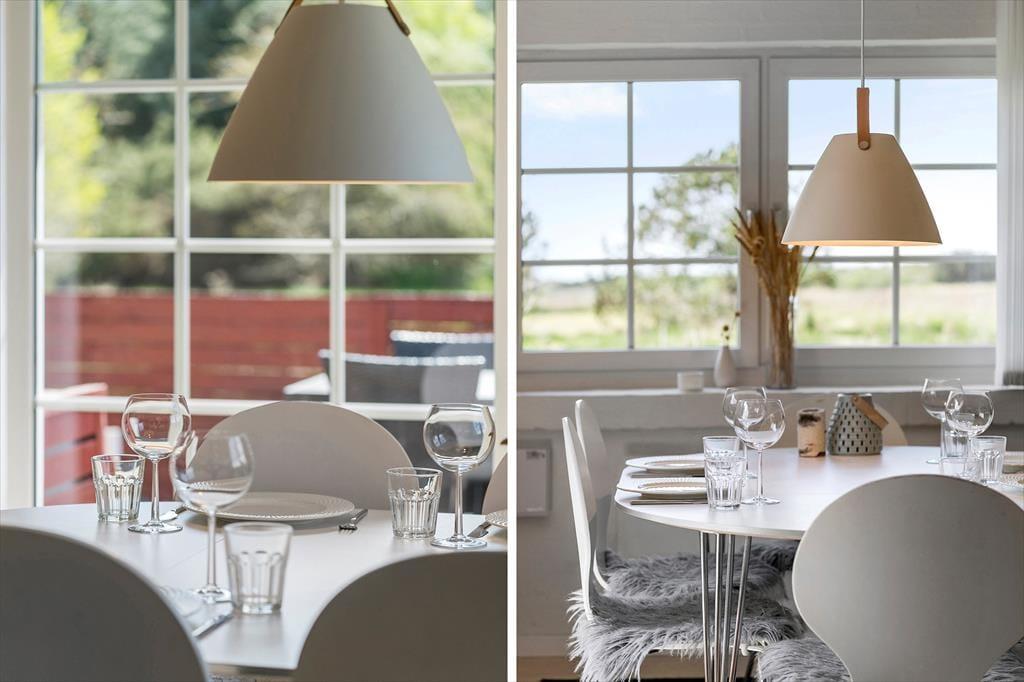 Sæt jer omkring det skønne spisebord og nyd udsigten gennem de flotte vinduer imens I tager et slag kort, inden der skal laves aftensmad, hvilket I nemt kan gøre uden at stoppe den gode samtale og de mange grin for med spisestuen og køkkenet i åben forbindelse har I rig mulighed for stadigvæk at være sammen på trods af at I laver forskellige ting. Trænger I til en afslappende dag på langs så fyr op for brændeovnen og smid jer på den behagelige sofa og nyd brændeovnens knitren og skønne varme der spreder sig i rummet.