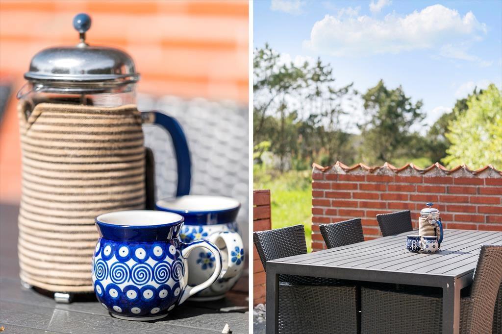 Tag morgenkaffen med udenfor og nyd den under åben himmel på en af de tre terrasser, mærk de første solstråler og beundre den flotte himmel der bliver et væld af lyserøde, orange og røde nuancer der blander sig med hinanden imens fuglene synger dagen ind. Nyd en skøn dag udenfor på den fantastiske store grund, her er noget for hele familien, liggestole til solbadning, gynger og rutsjebane til børnene, eller tag aftensmaden med udenfor og nyd maden og den friske luft i fællesskab, her har I god tid til hygge og ikke mindst tid til hinanden.