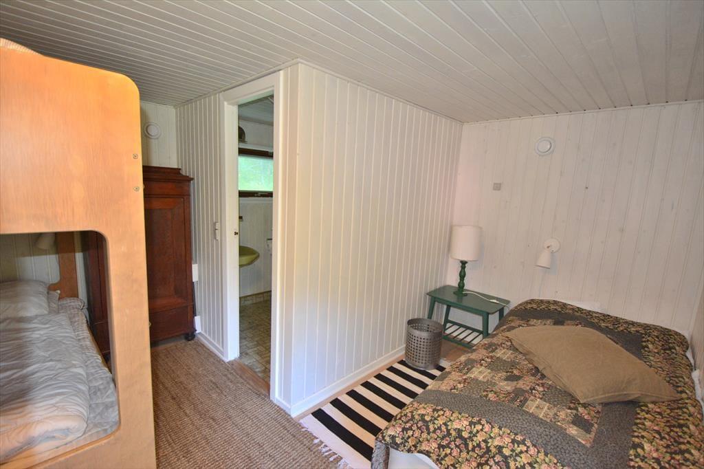 - Køjeseng - Øverste køje har meget begrænset plads op til loftet.