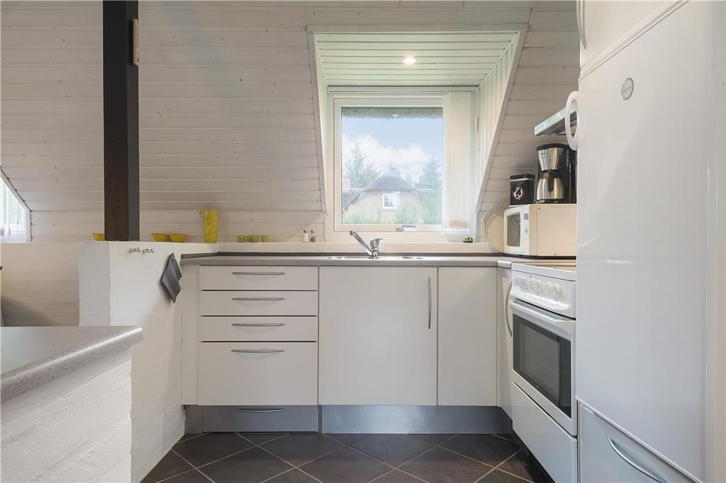 Træd ind i dette veludførte feriehus, der med sine mørke bjælker og flotte klinker frister til lange hyggelige dage i feriehuset for hele familien. Lav mad i det store rummelige køkken med hele familien, og skulle det ske nogle ikke vil være med i madlavningen kan I alligevel godt være sammen selvom I laver forskellige ting for med køkken, spisestue og opholdsstue i et rum er der gode muligheder for at være sammen på trods af at I laver forskellige aktiviteter. Efter en lang dag brugt på udforskning af området kan I smide jer foran skorstenen med indbygget pejs, og nyde dens fantastiske varme og hyggelig knitren der spreder sig rundt i hele rummet.