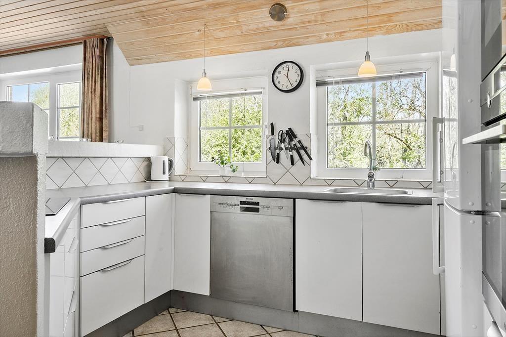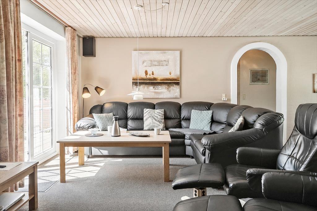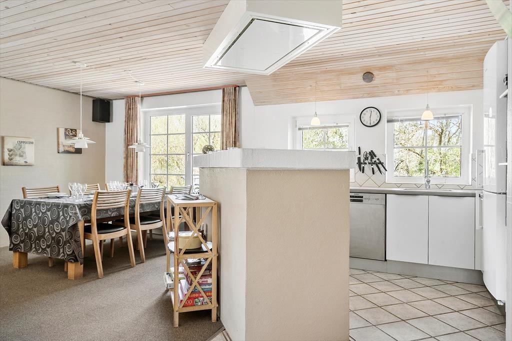 Det store køkkenalrum gør det muligt for jer at være sammen på trods af at I laver forskellige ting, her kan I sidde omkring spisebordet med et spil kort, samtidig med at der laves mad i køkkenet. Fyr op for den skønne brændeovn og smid jer i de lækre sofaer, og nyd varmen og den hyggelige knitren der spreder sig i hele rummet. Når familiens vandhunde trænger til at boltre sig i vandet, er poolen perfekt til dette formål og til dem der er mere til varmt vand og bobler kan de hoppe en tur i spaen og nyde det lækre vand, når I har nydt vandet, kan I tage en tur i den dejlige sauna og nyde varmen.
