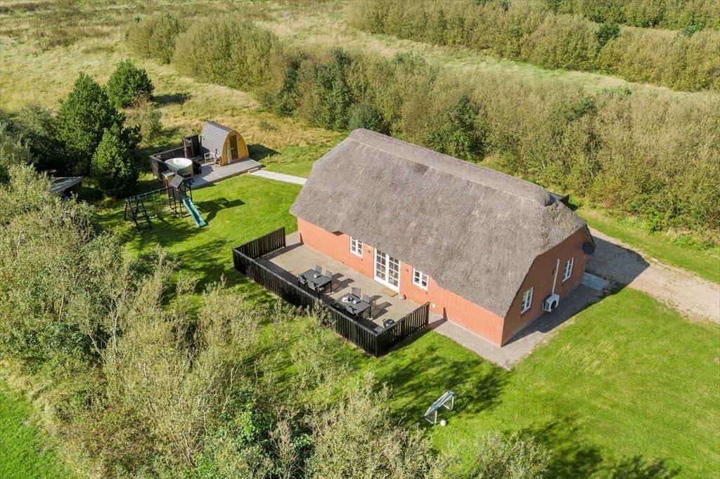 Blot 1900 meter fra huset finder I det dragende og, til tider, vindblæste Vesterhav, her er der et utal af muligheder for at skabe fantastiske ferieminder om det så er solbadning på stranden for en smuk kulør, lange gåture langs vandkanten eller en hyggelig svømmetur for hele familien i det kølige og klare vand. Feriehuset ligger på en skøn naturgrund på Husby Strandenge, som er et nyere feriehusområde beliggende på den modsatte side af hovedvejen, overfor feriehusområdet Vester Husby. I har også omkring 2 km til den smukke Husby Klitplantage her finder i både hundeskov, badesø vandre- og cykelruter, imellem Husby Klitplantage og Vester Husby ligger den fedeste skovlegeplads, hvor ungerne kan bruge utallige timer på leg og sjov.