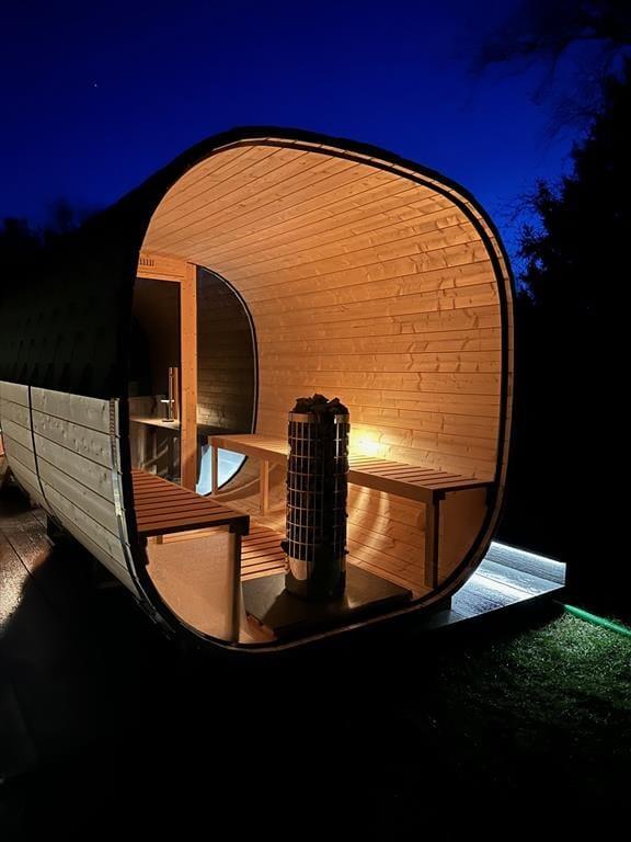 Solnedgangen vil kunne ses fra det udendørs wellness område. Her kan i følge solens sidste timer over klitterne og overgangen til en helt klar stjernehimmel. Alt sammen fra komforten af jeres spa og/eller sauna.