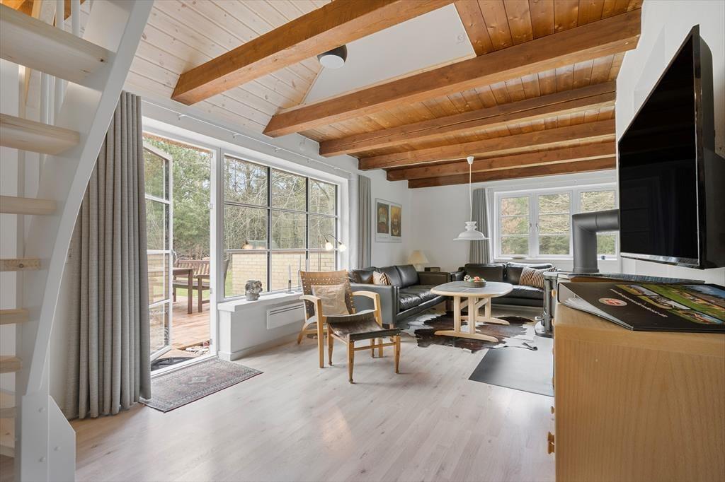 Nyd det smukke lysindfald der præger hele huset, om I så er i køkkenet, stuen eller badeværelset er der et fantastisk lys. Fyr op for kogepladerne og start madlavningen i det skønne og veludstyrede køkken som ligger i åben forbindelse med spiseafdeling og opholdsstue, her kan I være sammen selvom I laver forskellige ting, måske nogle spiller kort omkring spisebordet imens andre laver et lækkert aftensmåltid. Tænd op for brændeovnen og smid jer på en af de behagelige sofaer og nyd den ægte varme og hyggelige knitrende lyd som brændeovnen afgiver. Trænger I til at få varmen efter en kølig dukkert i det smukke Vesterhav så tænd op for den udendørs sauna med panorama ud over den store naturgrund og nyd den dejlige varme der langsomt indtager jeres kroppe.