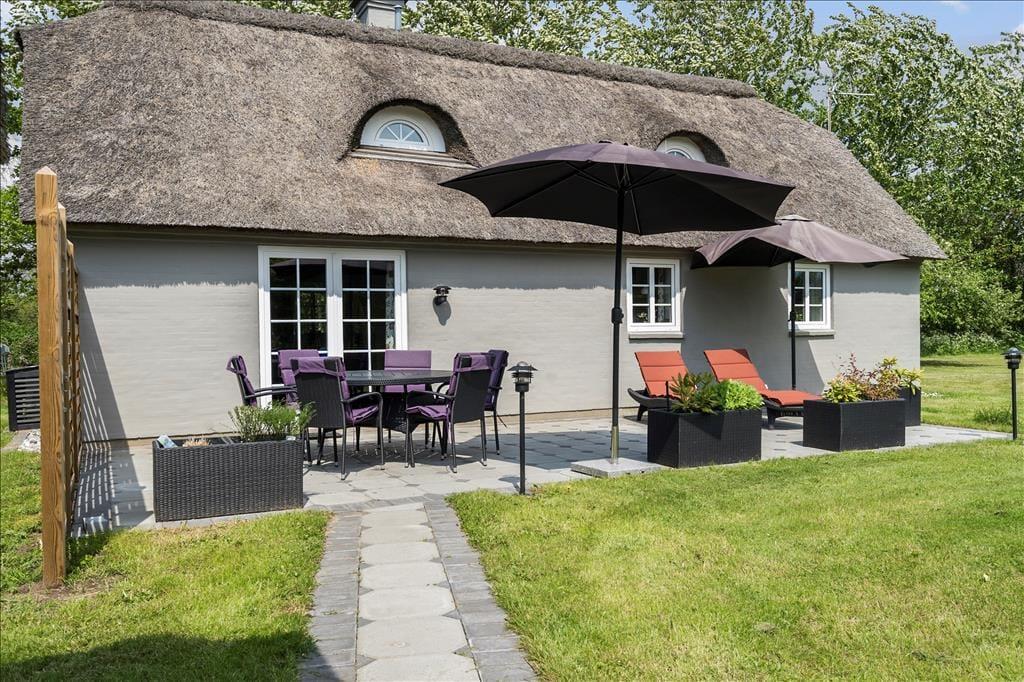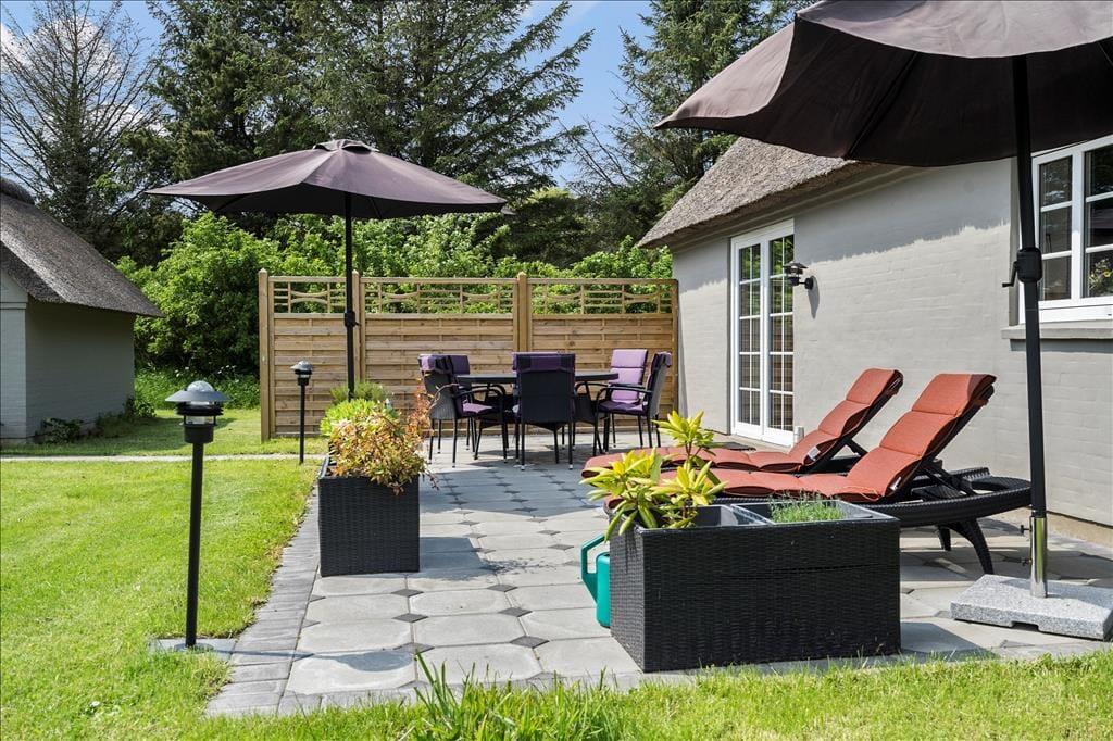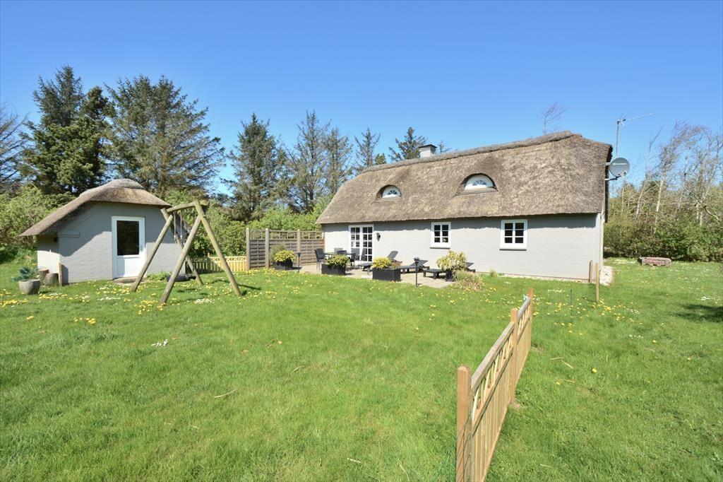 Den store naturgrund opfordrer til leg og sjov for hele familien, tag et spil bold eller en omgang tag fat inden I slår jer ned på den hyggelige terrasse, med de gode læ forhold, her kan I nyde solens stråler der blidt varmer jeres hud og giver en smuk sommerglød. For de mindste er der opsat et gyngestativ der opfordrer til mange timer på gyngen, imens kan I nyde sommerens varme på en af de flotte liggestole.