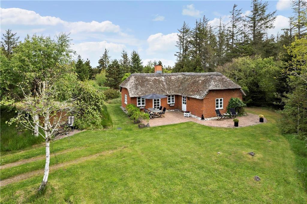 På første række midt i klitterne ligger dette skønne feriehus, og med den skønne og store naturgrund er der mange muligheder for hygge for hele familien, her kan man være sig selv og slappe af sammen med hele familien. På grunden er der opsat gynger og sandkasse til stor glæde for børnene, imens ungerne leger kan I slå jer ned på den store terrasse, eller tag aftensmaden med udenfor og lav den på den gode grill, og nyd de lange sommeraftener og se solen gå ned bag klitterne mod vest, og himlen der skifter farve fra klar blå til et væld af orangerøde nuancer.